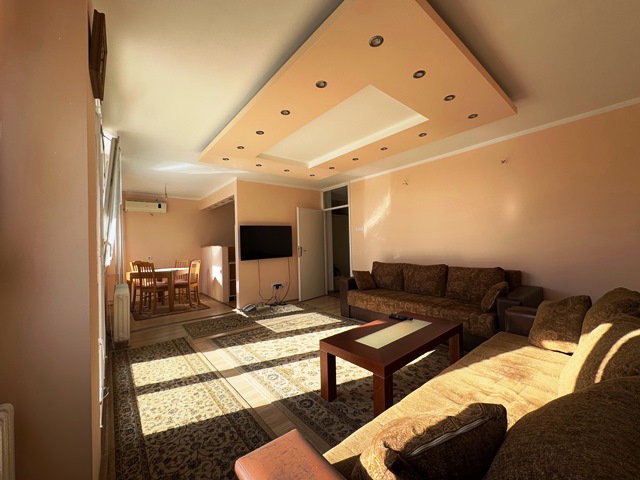 Opis: Izdaje se dvosoban stan od 60m2 na 5. spratu kvalitetne zgrade od crvene fasadne cigle sa liftom i urednim ulazom. Stan ima terasu sa odličnim panoramskim pogledom. Stan je kompletno opremljen, klimatizovan i ima centralno grejanje. Udoban, svetao i funkcionalan prostor idealan je za dugoročni zakup. Struktura: dnevni boravak sa kuhinjom i trpezarijom, spavaća soba, predosoblje sa ugradnim plakarima, kupatilo i terasa. Kućni ljubimci nisu dozvoljeni. Cena zakupa: 700 €. Depozit: obavezan, u visini jedne mesečne zakupnine. Stan je odmah useljiv. Agencijska provizija koju plaća kupac 50% prve mesečne zakupnine.