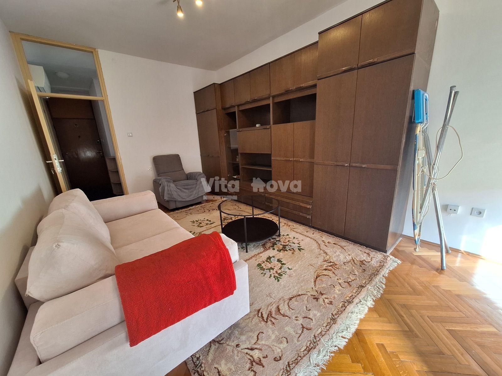 Opis: Iznajmljuje se stan na 8. katu zgrade na Voštarnici. Sastoji od spavaće sobe, dnevnog boravka s balkonom koji se može koristiti kao dodatna soba, kuhinje s ostavom i lođom, kupaonice, te odvojenog WC-a.