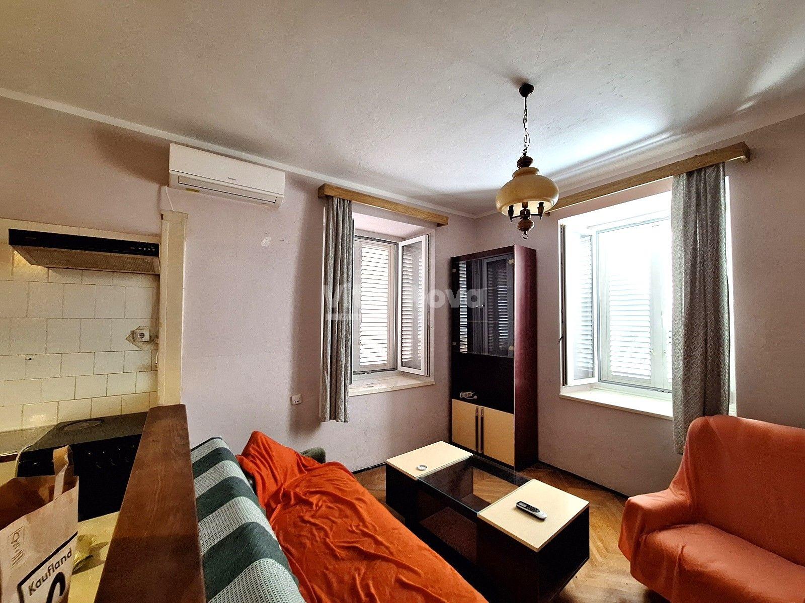 Opis: Iznajmljuje se od 1.11. stan na 1. katu zgrade na Poluotoku. Stan ima dvije sobe, te dnevni boravak sa kuhinjom i blagovaonicom i kupaonicu. Adaptacijom prostora može se dobiti poslovni prostor sa tri ureda, čajnom kuhinjom i kupaonicom.