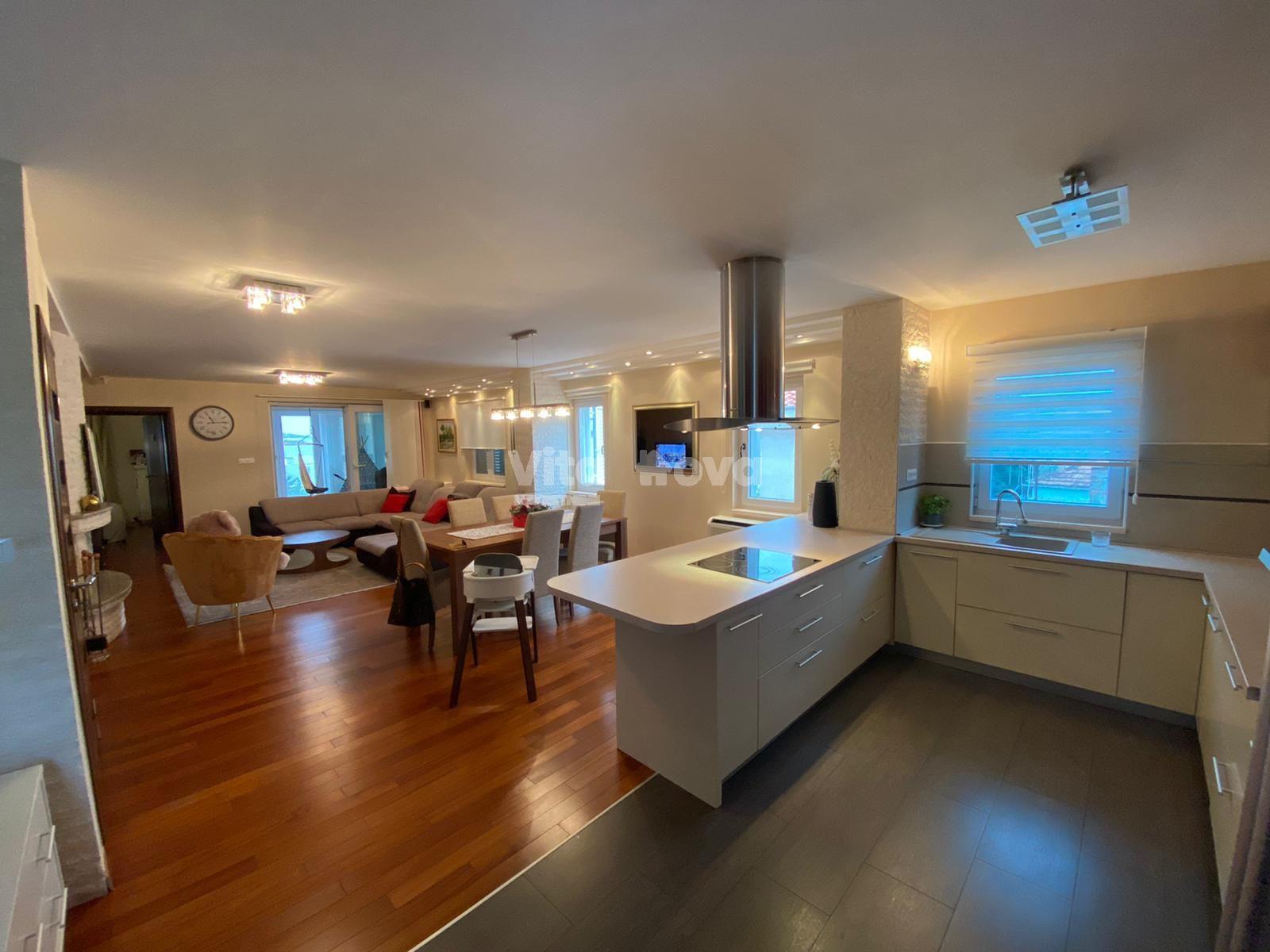 Opis: Prodaje se obiteljska kuća, useljiva i održavana, u predjelu Smiljevca. Sastoji se od prostranog dnevnog boravka, kuhinje i blagavaonice, četiri spavaće sobe, dvije kupaonice i wc-a. U potkrovlju je dodatnih cca 130 m2 koji se mogu urediti kao dodatna stambena jedinica. Kući pripada u nastavku konoba i vinski podrum, te teretana sa biljarskim stolom i saunom. Osim u dvorištu, parking je osiguran u velikoj garaži koja može služiti i kao skladišni prostor. Vlasništvo je uredno, tereta nema. Za sve dodatne informacije kontaktirajte nas na: 091/7677-657 ili vitanovanekretnine@gmail.com