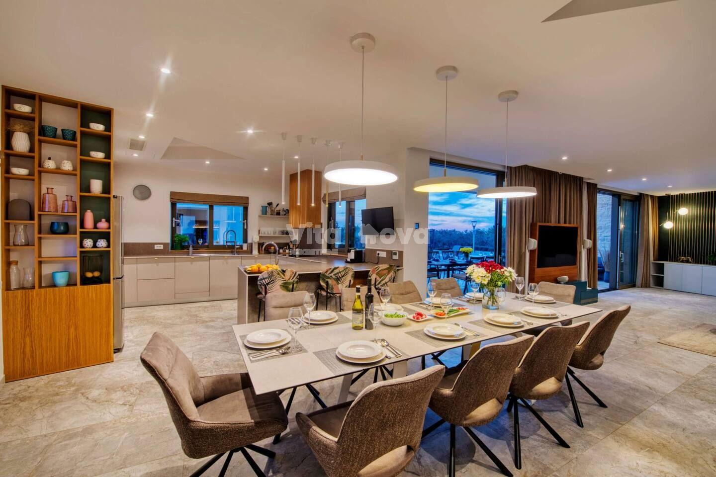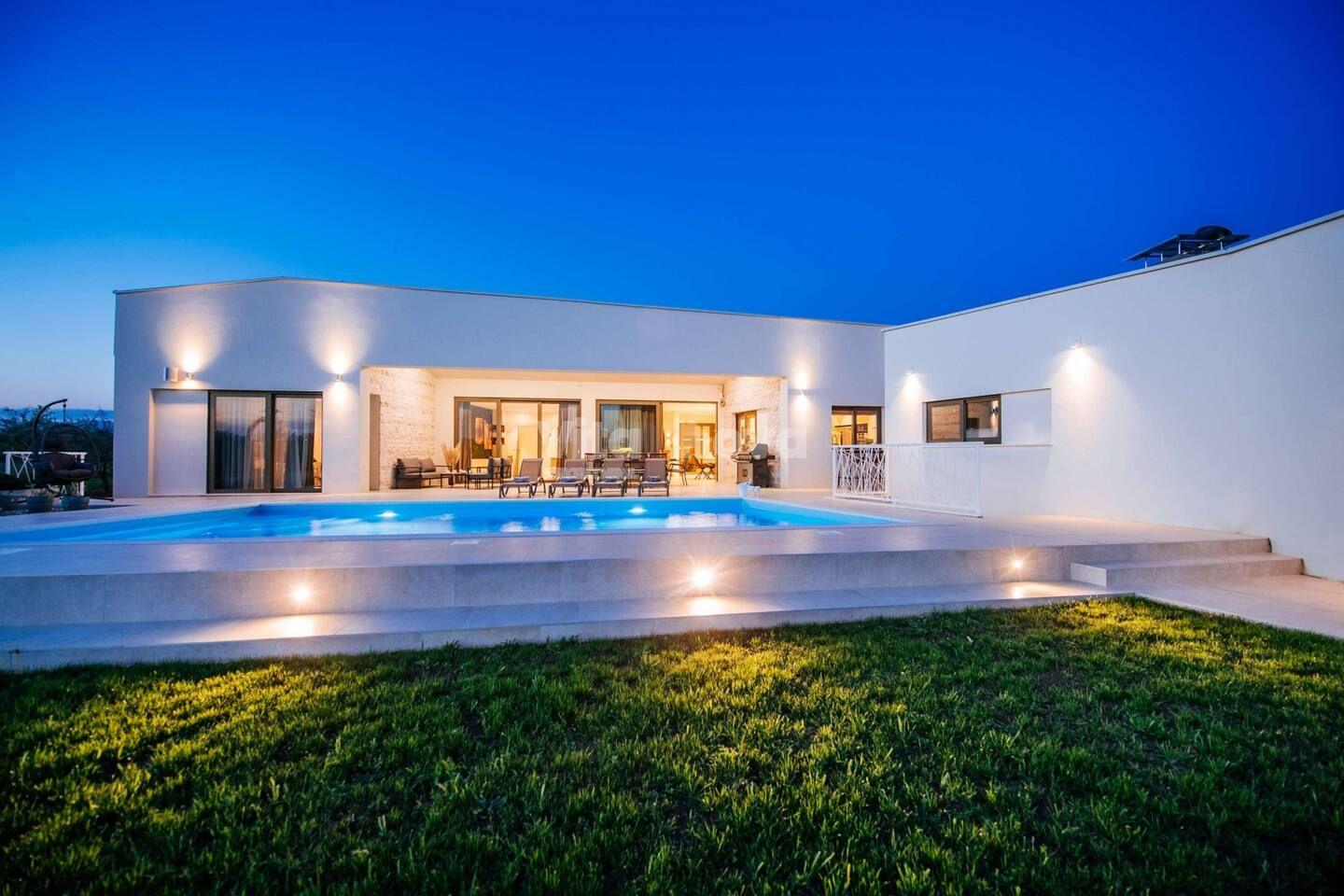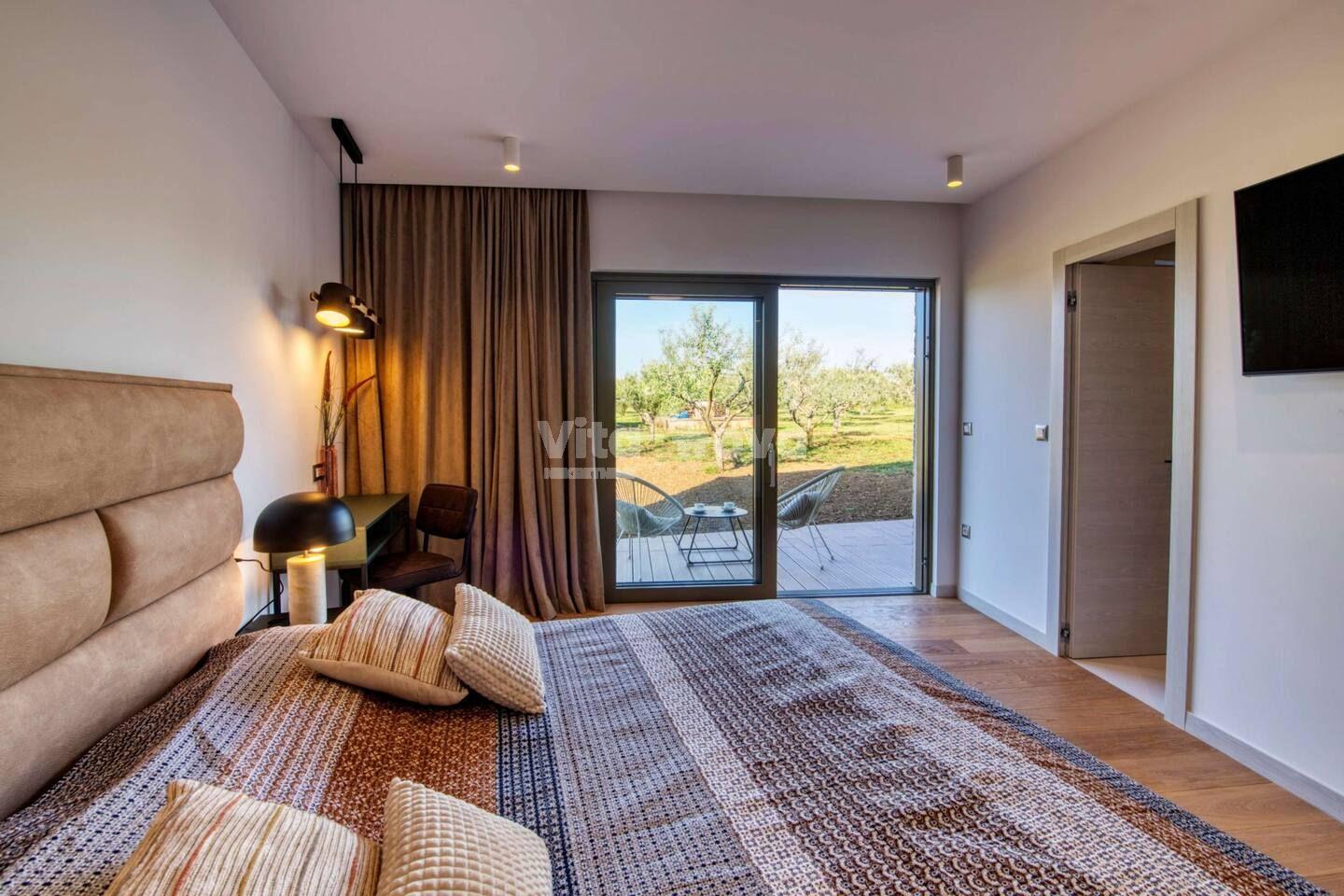 Opis: Prodaje se vila izgrađena u modernom stilu 2021. godine, sa 350 m2 stambenog prostora, dok ukupna površina imanja iznosi 3.030 m2, što uključuje 45 stabala maslina, uz brojni sadržaj za igru i zabavu za cijelu obitelj. Vila je u potpunosti klimatizirana. U blagovaonici se nalazi stol za blagovanje sa 10 sjedećih mjesta. Svaka od spavaćih soba ima vlastitu kupaonicu, od kojih jedna ima kadu, a ostale tuš, a kreveti za jednu osobu po potrebi se mogu spojiti. U kući je 5 spavaćih soba, od kojih su 3 s bračnim krevetom. Vila također ima dva odvojena toaleta.