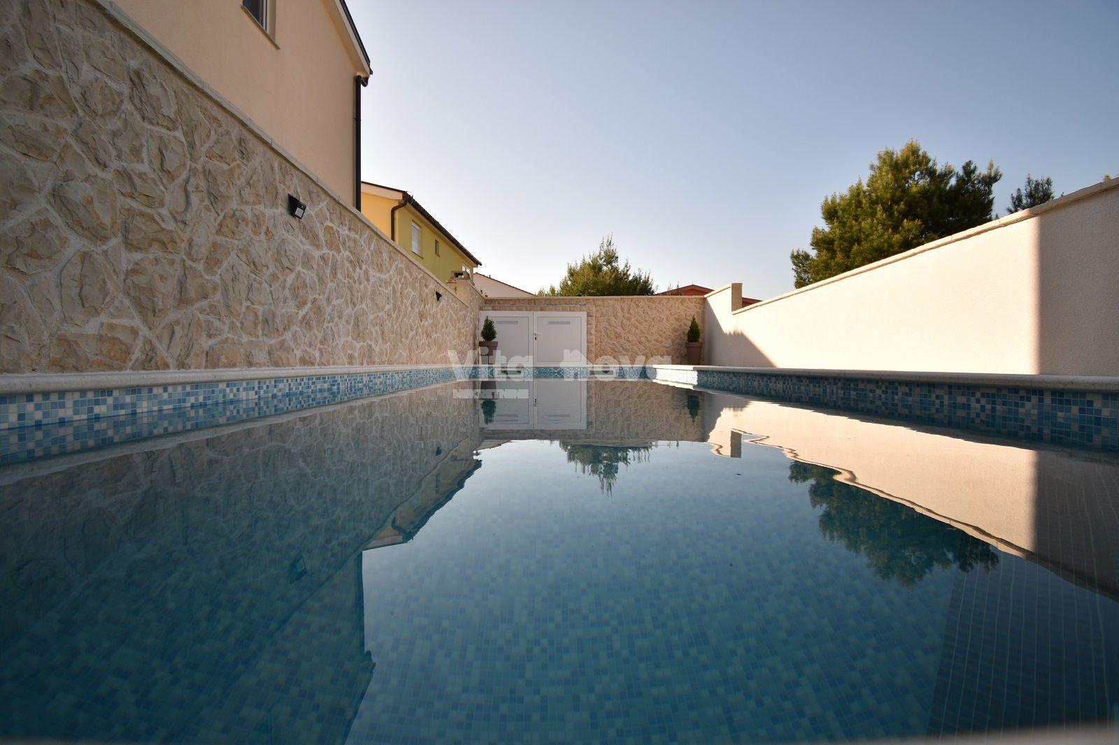 Opis: Katnica i tri kuće u nizu s bazenom na Viru na samo 300 m od mora na zemljištu površine 1259 m2.