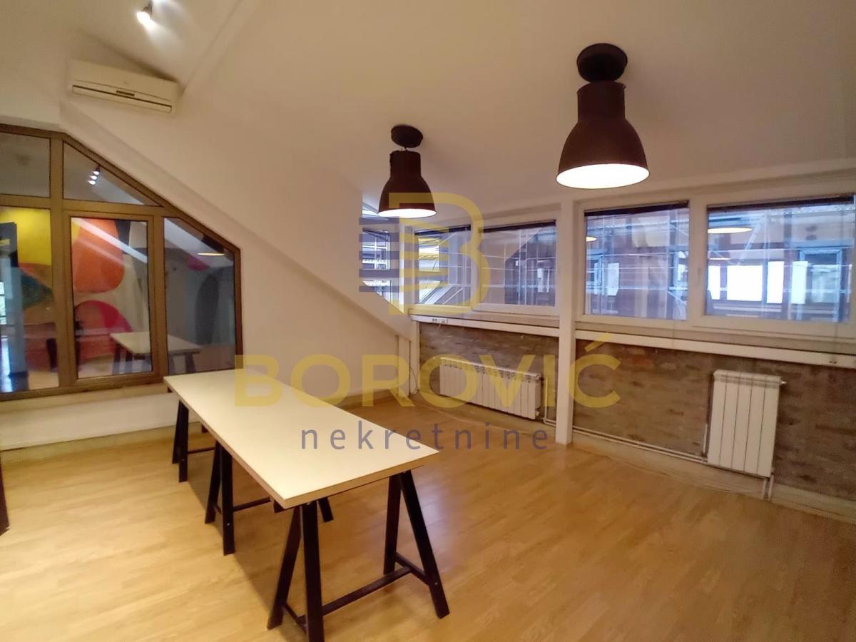 Prostor je funkcionalno organizovan i odlikuje se prijatnim radnim ambijentom. Ulazni deo vodi u manju i veću kancelariju uz koje se nalazi toalet. Iz drugog hodnika pristupa se prostranoj radnoj prostoriji sa potpuno opremljenom kuhinjom i izlazom na zastakljenu terasu koja pruža dodatnu komfornu zonu. U ovom delu nalazi se i zasebna kancelarija, kao i moderno kupatilo opremljeno đakuzi kadom.