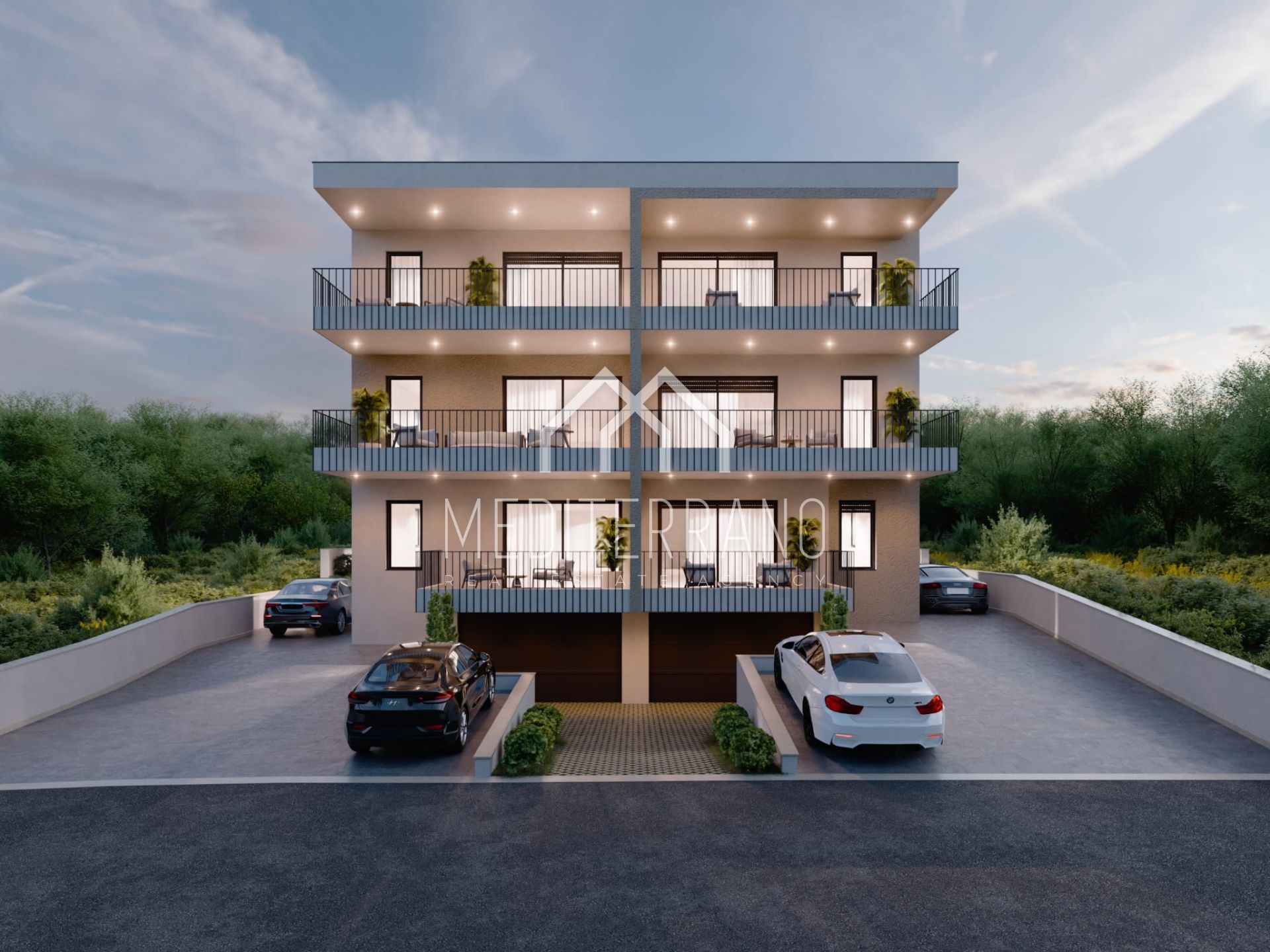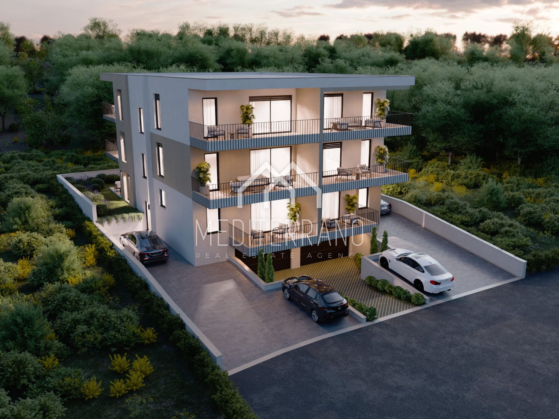 Stan se sastoji od ulaznog hodnika, glavne kupaonice, kuhinje s blagovaonicom i dnevnim boravkom otvorenog koncepta, iz kojeg se izlazi na veliku natkrivenu terasu površine 17,49 m² – savršenu za uživanje i odmor. Dodatno, stan ima tri spavaće sobe, još jednu kupaonicu te manju terasu od 7,95 m².