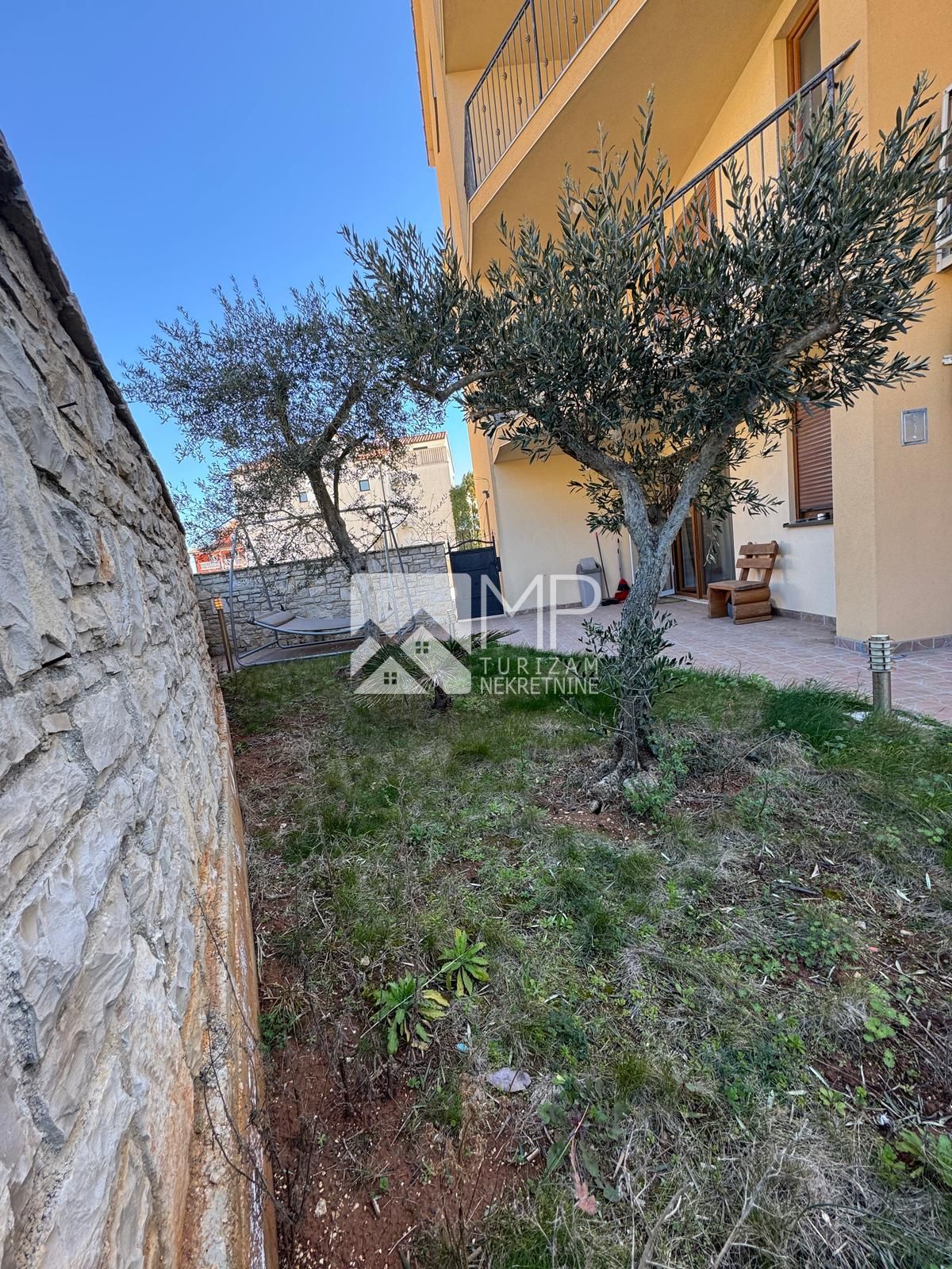 Stan se nalazi u prizemlju stambene zgrade smještene na odličnoj lokaciji, udaljen od mora 1km, kompletno ograđen i nudi privatnost.