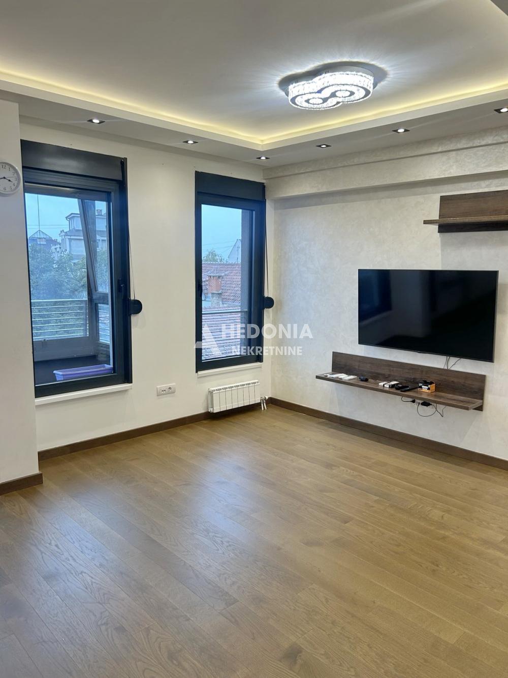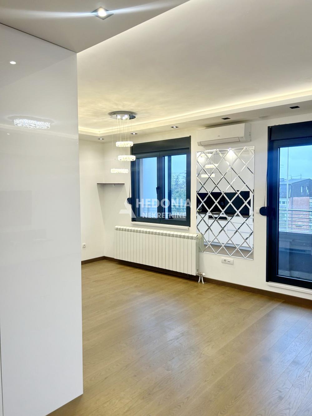 Opis: U mirnoj i zelenilom okruženoj uilici na Banovom brdu, nadomak najpopularnije Požeške ulice, nalazi se ovaj komforan trosoban stan. Smešten je u novijoj zgradi koja je uredna i održavana sa liftom. Infrastruktura je kompletna, u blizini su vrtić, obdanište, osnovna i srednja škola, Dom zdravlja kao i svi ostali neophodni sadržaji za porodičan život. U prilog lokaciji svakako doprinosi blizina "beogradskog mora" - Ade Ciganlije, najposećenijeg ekološkog dela grada sa kupalištem i bogatim ugostiteljskim i zabavnim sadržajima. Stan se sastoji od ulaznog hodnika, dnevnog boravka sa izlazom na terasu, kuhinje, dve spavaće sobe, kupatila i toaleta. U cenu stana su uključena dva velika američka plakara u sobama, plakar od 5m u hodniku, svi elementi i oprema u oba kupatila, kompletna bela tehnika i oprema koja se nalazi u kuhinji i garažno mesto. U celom stanu je urađena rasveta i spušteni plafoni. Za svaku preporuku!