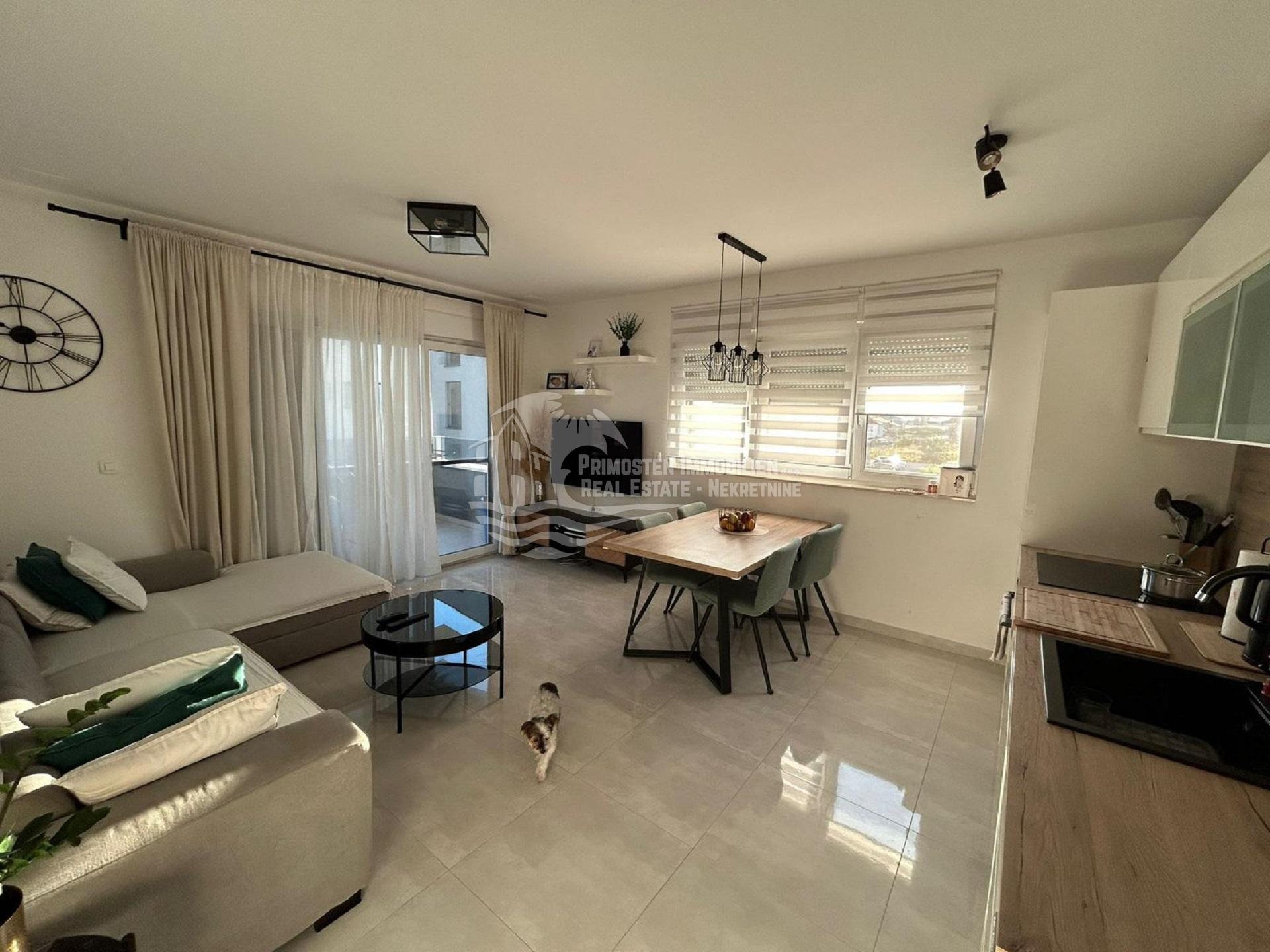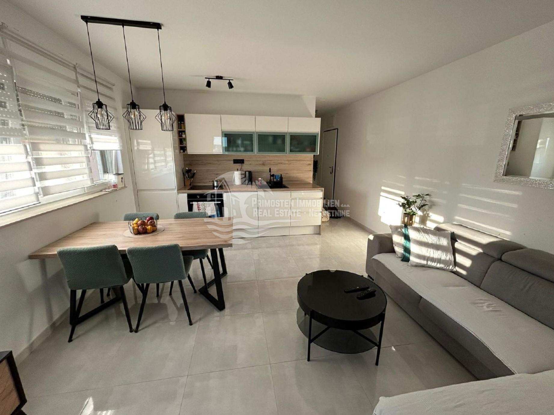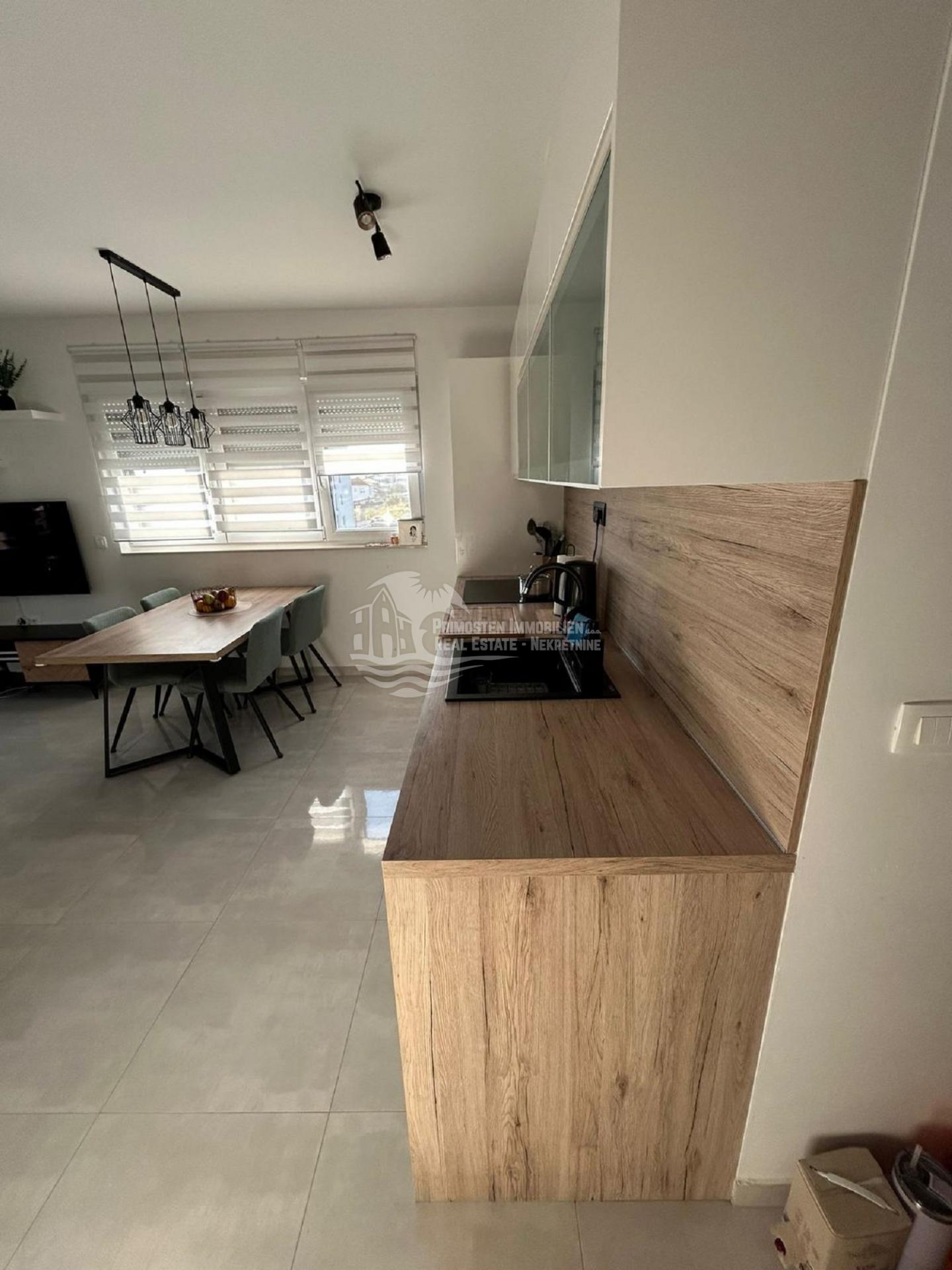 Opis: Kompletno namješten stan na drugom katu u Segetu udaljeno 300m zračne linije od mora, te u blizini svih sadržaja. Stan se nalazi u stambenoj zgradi novije gradnje koja ima lift i zajednički bazen. Stambena površina stana sa balkonom iznosi 60 m2. Stan se sastoji od hodnika, dvije spavaće sobe, kupaonice, te prostranog dnevnog boravka sa kuhinjom. Iz dnevnog dijela se izlazi na balkon sa kojeg se pruža pogled na more. Stanu pripada jedno vanjsko parkirno mjesto.