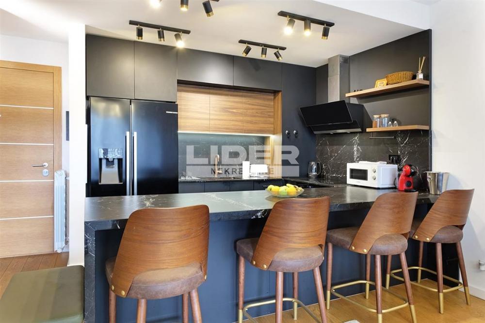 Stan je nov, luksuzno namešten i potpuno opremljen svim detaljima potrebnim za život — od posteljine, posuđa i aparata, do pegle, usisivača i drugih sitnica.