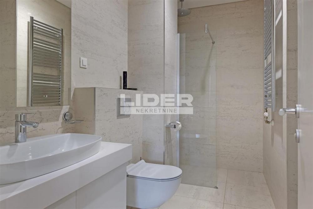 Opis: zdaje se potpuno opremljen, luksuzan stan u prestižnom kompleksu Skyline Belgrade, u ulici Kneza Miloša – jednom od najtraženijih rezidencijalnih delova Beograda.