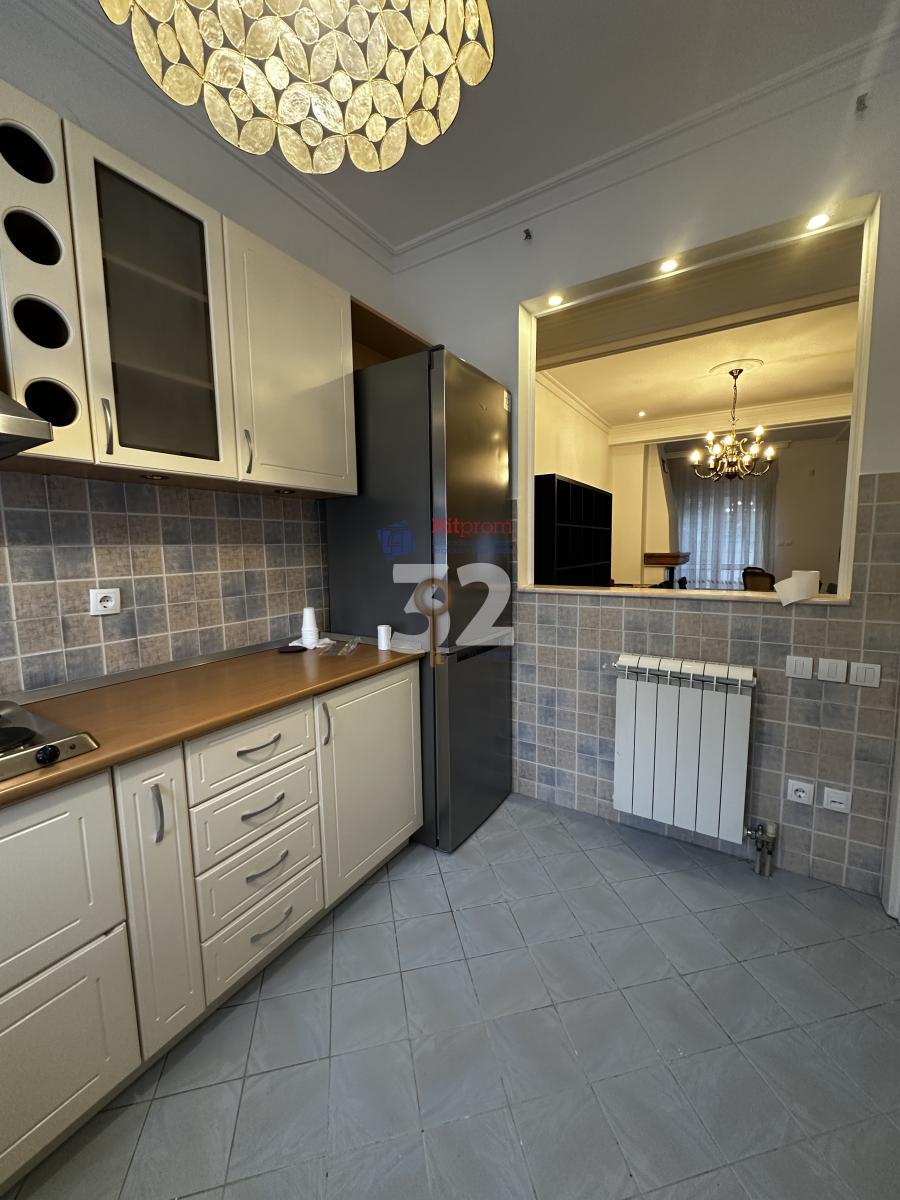 Behind Beli dvor, south of Dedinje, house in row, , furnished except beds, has closets, (can be unfurnished) 2 modern bathrooms and toilet, small yard. The upper ground floor consists of a kitchen, living room, dining room, toilet, exit to the yard; on the 1st floor 3 bedrooms, bathroom, loggia, on the 2nd floor one larger room, terrace, bathroom. In the basement- auxiliary rooms with closets, laundry room, garage. The price is valid for a multi-year lease. monthly payment, 2 deposits, agency comission 50%