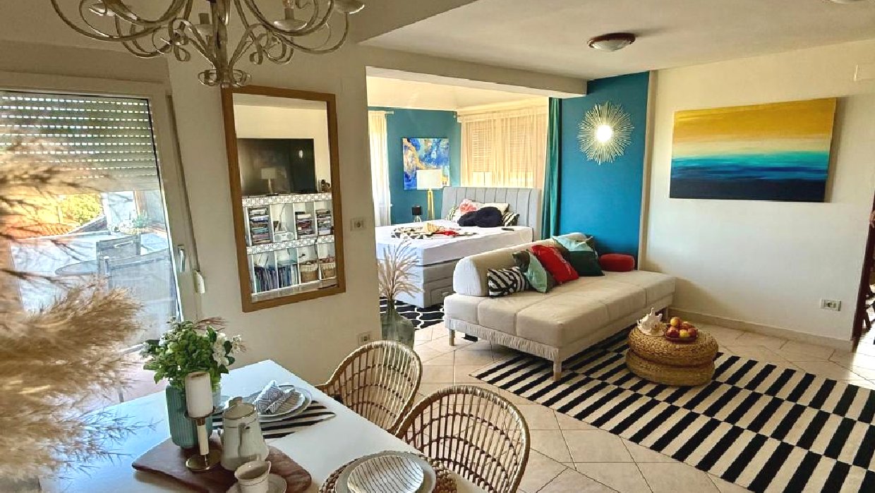 Opis: Premantura, prekrasan dvosobni stan s pogledom na more i 400 od plaže. Stan se sastoji od kuhinje s blagovaonicom i dnevnog boravka, spavaće sobe, terase i kupaonice na prvoj...