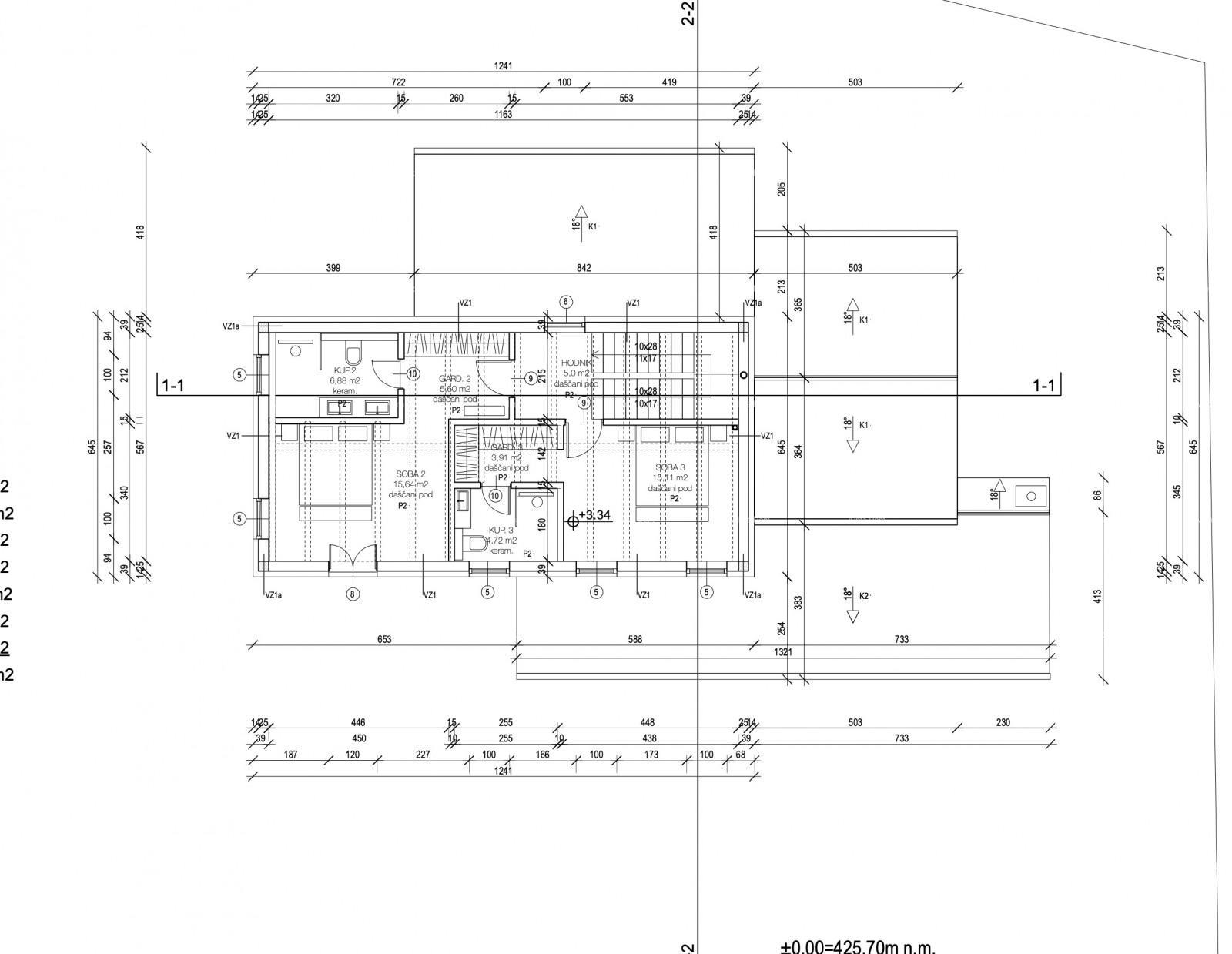 Kuća se sastoji od prizemlja i prvog kata. U prizemlju se nalazi: ulaz, vešeraj, spavaća soba s kupaonom, dnevni boravak, kuhinja, balgavaona, gostinjski toalet. U dvorištu se nalaze natkrivena terasa, bazen i sunčalište. Prvi kat uključuje hodnik, 2 spavaće sobe s vlatitim kupaonama i garderobama.