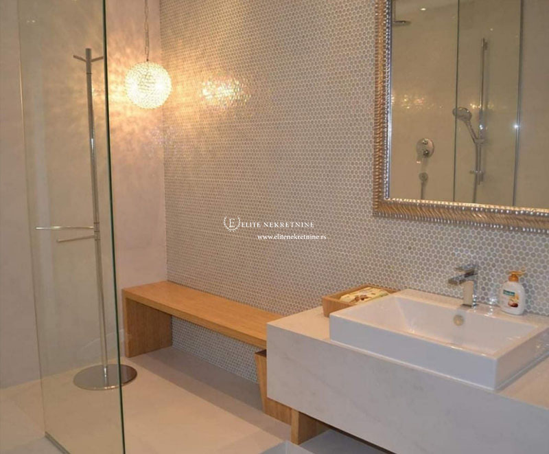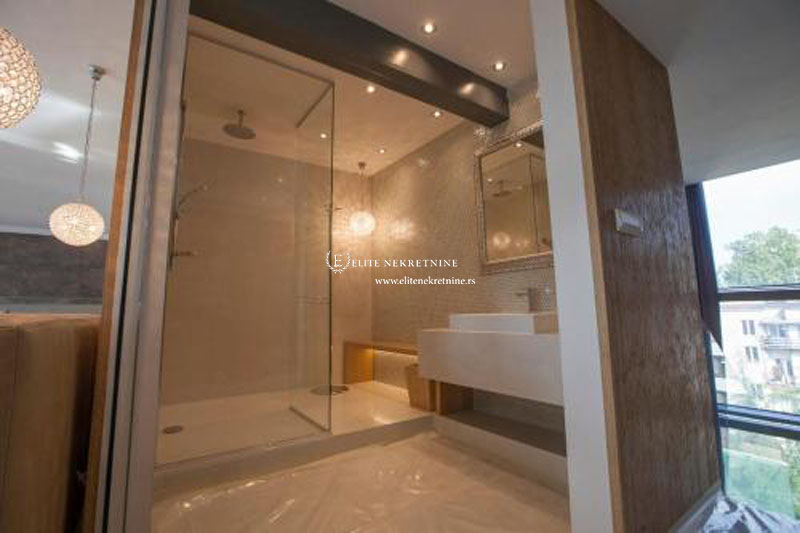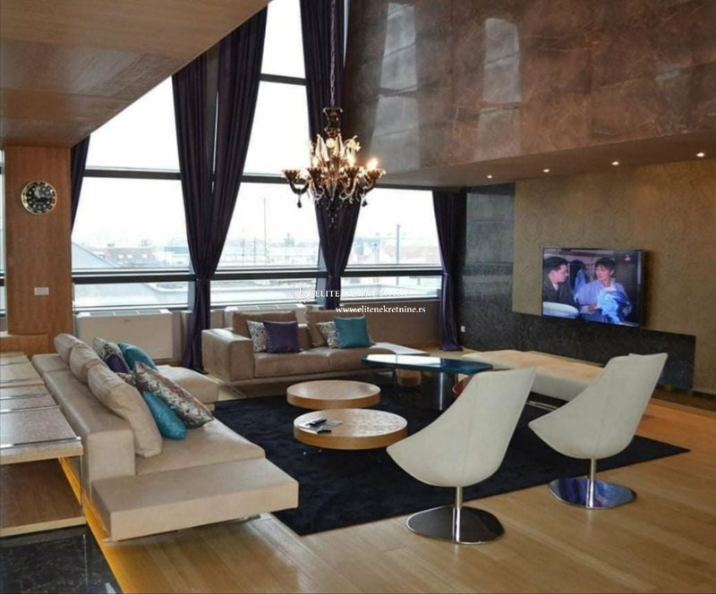 Opis: Izuzetno lep i luksuzan stan, dvostrano orijentisan. Sastoji se od prostranog dnevnog boravka u čijem sklopu su i kuhinja i trpezarija. Kuhinja je opremljena visoko kvalitetnom kuhinjskom opremom. Dnevni boravak je izuzetno svetao, sa visinom plafona 5m i izlazi na dve terase. Donji nivo stana ima i toalet za goste. Galerija, koja se nalazi iznad kuhinjskog dela, ima pogled na dnevnu sobu i organizovana je kao spavaća soba sa luksuznim kupatilom. Kombinacija prirodnih materijala, jednostavnog nameštaja pravih linija i moderne rasvete, daje nesvakidašnji doživljaj prostora. Postoji mogućnost zakupa garažnog mesta po ceni od 150 evra/mesečno.