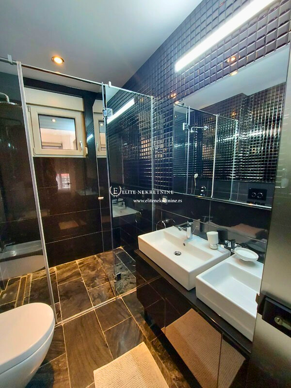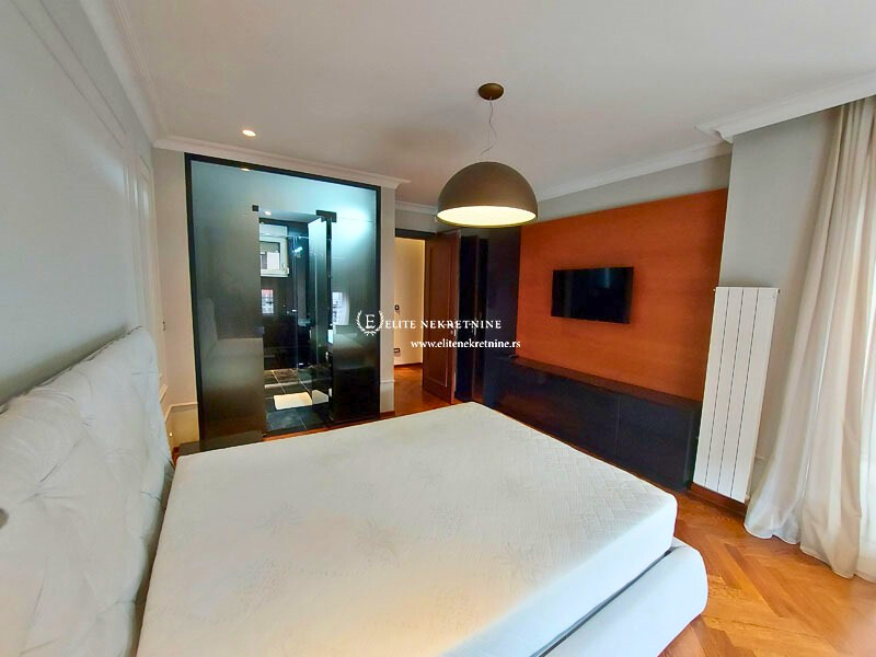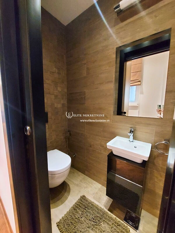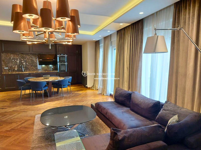 Opis: Odličan stan, smešten u novoj zgradi u blizini Hrama svetog Save. Mirna ulica sa dosta novih zgrada i izuzetnim sadržajem u neposrednoj blizini - brojne prodavnice, restorani, kafići i Kalenić pijaca. Do uključenja na autoput je potrebno svega pet minuta vožnje, a do frekventnih ulica kroz koje prolaze linije gradskog prevoza svega 5-10 minuta hoda. Zgrada ima moderni eksterijer sa liftom koji vodi do izuzetno uređene garaže zgrade. Stan se nalazi na drugom spratu. Atraktivna, moderna koncepcija obuhvata otvoren dnevni i kuhinjsko-trpezarijski prostor. Kuhinja je opremljena tehnikom vrhunskog kvaliteta. Stan poseduje dve spavaće sobe , kupatilo i gostinski toalet , prostranu terasu. Glavna spavaća soba ima kupatilo(master). Kompletno namešten italijanskim nameštajem. Enterijer je moderan i udoban, sa odličnim parketom, keramikom visokog kvaliteta i dizajna, kao i spuštenim plafonima sa ugrađenom halogenom rasvetom. Atraktivan, prijatan i udoban ambijent prilagođen životu modernog čoveka.