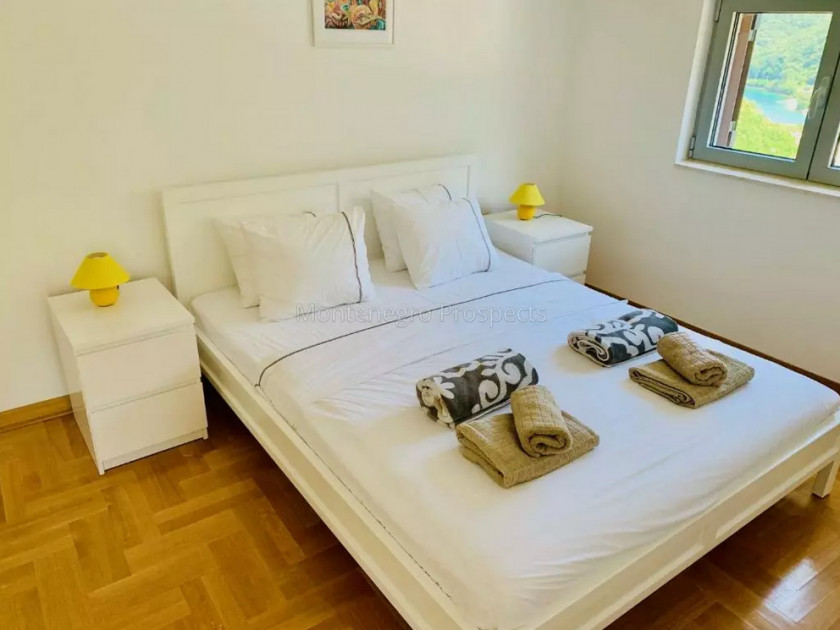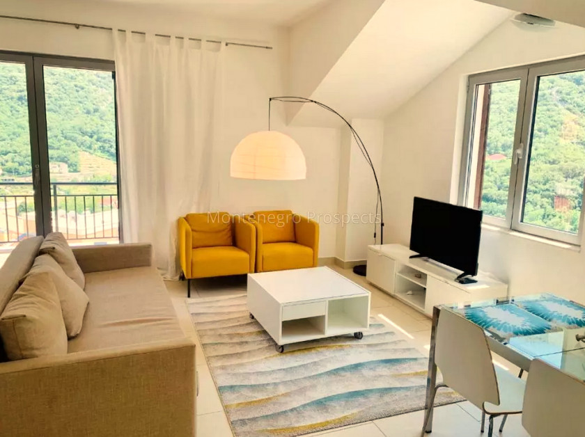 Na prodaju je jednosoban apartman od 63 m² u prestižnom kompleksu Lavender Bay u Donjem Morinju. Nalazi se na poslednjem spratu, a sa balkona se pruža lijep pogled na more. Stan je prostran, svjetao i potpuno opremljen – ima kuhinju sa svim uređajima, dnevni boravak, klima uređaj i veš mašinu, što ga čini pogodnim kako za izdavanje turistima, tako i za duži boravak.