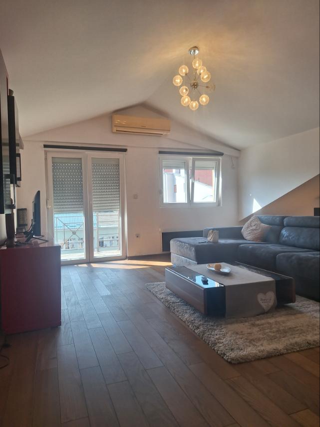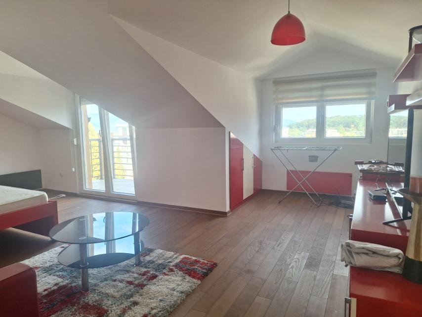 Opis: Stan 95M2 uknjizen 200m od kruznog toka Pent haus iz 2016 godine kompletno namesten 1400eura / m2 parking privatni za stanare sa rampom