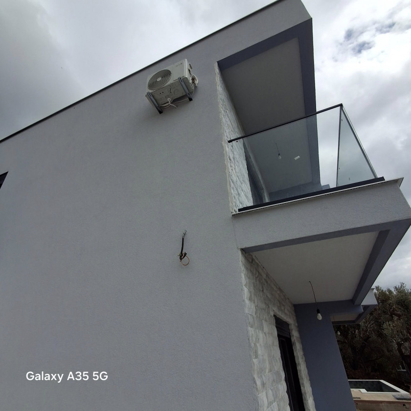 У нас участок 500м2, бассейн переливного типа и захватывающий вид на море.