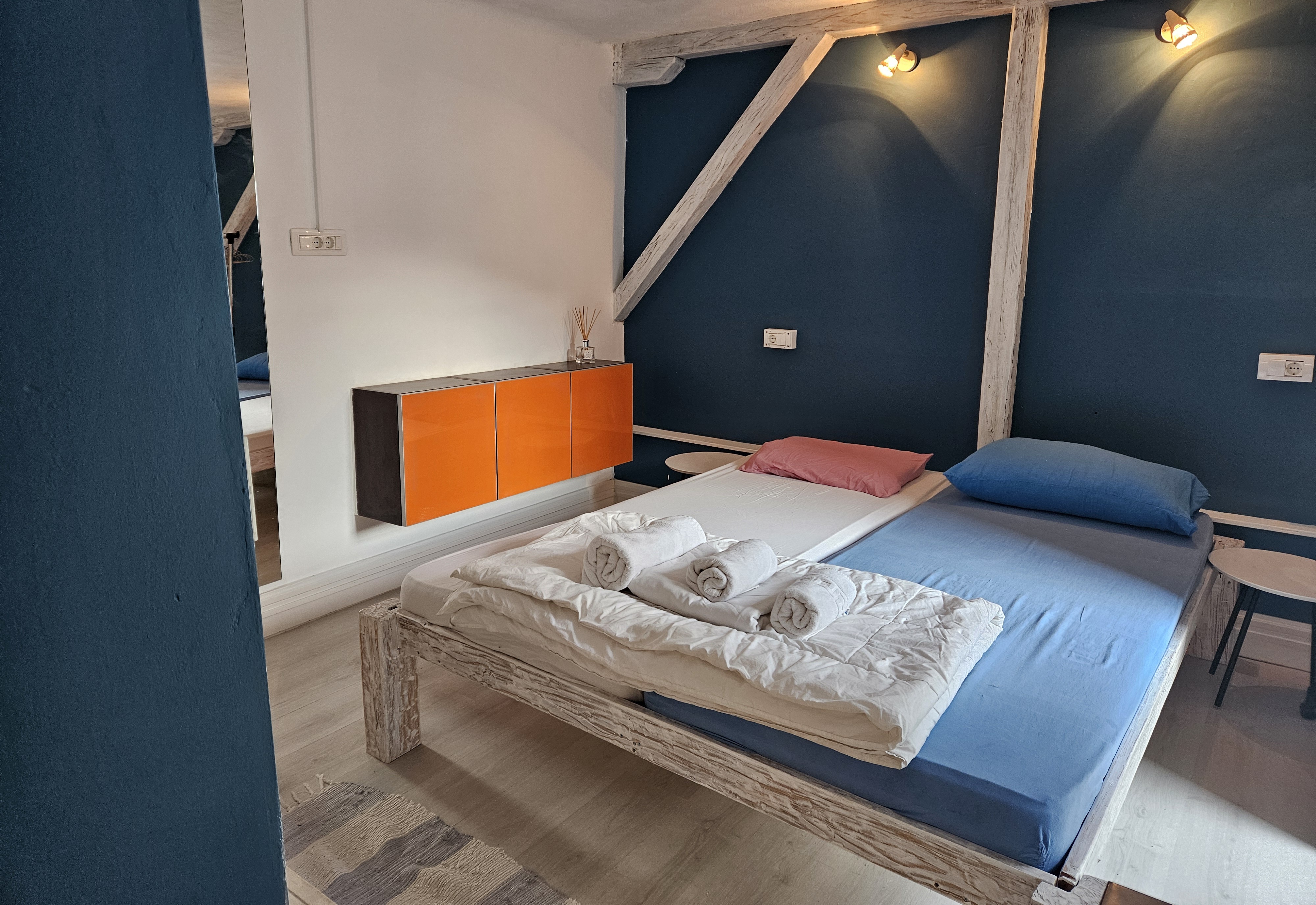 Opis: Aura Room je studio apartman koji se nalazi na adresi Zarija Vujoševića broj 28 na Novom Beogradu. Namenjen je za komforan boravak do dve odrasle osobe. Sastoji se od glavne prostorije u kojoj se nalazi udoban bračni krevet, kuhinja koja je opremljena i za duže i za kraće boravke i šank koji je u isto vreme deo za ručavanje, ali i radna površina za spremanje ukusnih obroka. Apartman raspolaže i kupatilom sa tuš kabinom. Od dodatnog sadržaja gostima su na raspolaganju besplatan WIFI, TV, čisti peškiri i posteljina. Lokacija apartmana je idealna jer se nalazi odmah kod tržnog centra Ušće, a do Zemuna ili centra grada Vam treba manje od 10 minuta. Za sve goste koji dolaze svojim prevozom na raspolaganju je besplatno privatno parking mesto u blizini objekta. Dobrodošli u apartman Aura Room!