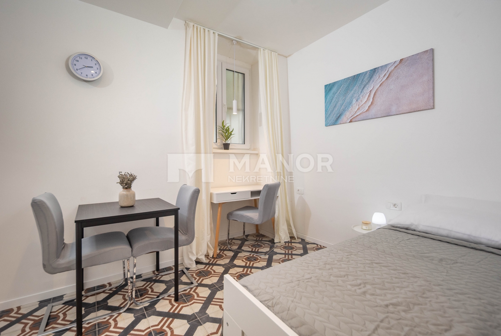 Opis: Manor predstavlja novoadaptiranu i moderno opremljenu garsonijeru idealnu za jednu osobu ili par. Stan se nalazi u samom srcu grada, na odličnoj lokaciji s brojnim sadržajima u neposrednoj blizini.