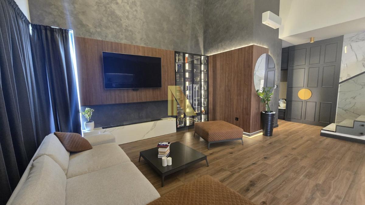 Sastoji se od prostranog dnevnog boravka sa visokim plafonima, kuhinje sa trpezarijom, spavaćih soba, kupatila, hodnika, terasa i stepeništa.