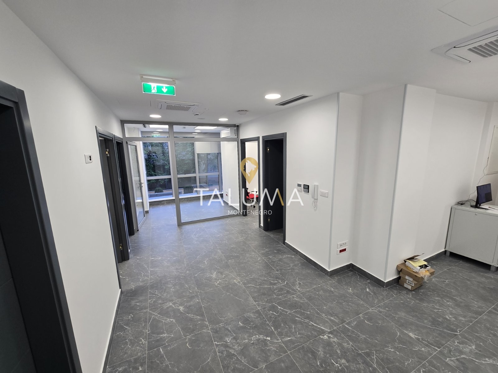 Svaka prostorija je klimatizovana, a prostor posjeduje i alarmni sistem, kao i video nadzor.