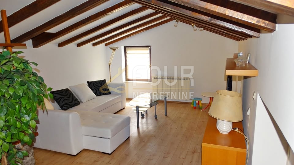 Opis: Iznajmljuje se dvoetažni, potpuno namješten dvosobni stan s dnevnim boravkom u Jušićima (Matulji), površine 90 m2. Nalazi se u obiteljskoj kući i ima posebni ulaz i verandu s prekrasnim pogledom na more i Učku.