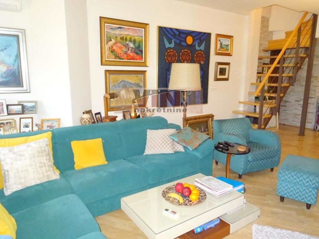 Opis: U kvalitetno gradenoj zgradi, novijeg datuma, nalazi se ovaj vrlo zanimljiv dupleks.Ambijetalno odiše skladnim dnevnim boravkom, u cijem je sastavu i trpezarija, kao i kuhinja. U tom delu, koji se nalazi na prvoj etaži, pored te dve sobe i kuhinje, je i prvi mokri cvor, kao i izuzetno mocna terasa. Na drugom nivo su spavace sobe i kupatilo, kao i zahvalni garderober u koji može da se ude i organizuje sva odeca, i ostale neophodne kucne stvari koje se odlažu u takvim prostorima. Sve je u stanu vrlo kvalitetno napravljeno i odradeno korišcenjem prvoklasnih materijala. Sama zgrada nema veliki broj stanara i ima svoj sopstveni park opremljenim sa rekvizitima za decu. Stan je uknjižen na 84m2, mereno ima 94m2. Važno je napomenuti da je uz kupovinu ovog stana moguce kupiti 2-3 garažna mesta u samoj zgradi.
