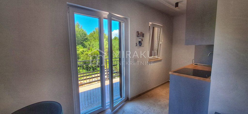 Stan se nalazi u kući na prvom katu na mirnoj lokaciji u blizini atraktivnih plaža Podvrške i Slanica.
