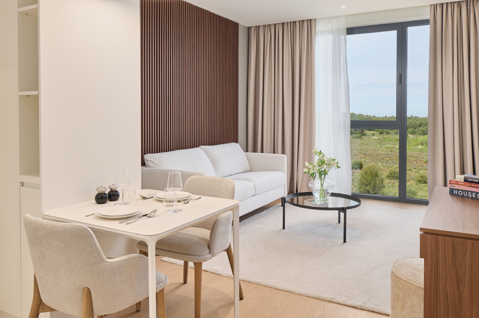 Opis: ZADNJI STANOVI! TOP RESORT PORED UMAGA LUKSUZNI APARTMAN S POGLEDOM NA MOREManje od 200m udaljenosti od plaže unutar luksuznog resorta koji zadivljuje 100-metarskim bazenom na krovu aparthotela. Dizajnerski namještaj, pogled na more, blizina golf igrališta, spa centar, restorani, trgovine, bazeni unutar resorta, concierge usluga, itd. čine ovaj apartman neodoljivim. Jedinica A31 se nalazi na 2. katu, ukupne je neto površine 100,20 m2. Sastoji se od ulaza, hodnika, vešeraja, 2 kupaonice, WC-a, 2 spavaće sobe i open space dnevnog boravka sa kuhinjom i blagovaonicom. Također, ima i balkon površine 18,80 m2.Cijena apartmana je sa namještajem i opremom te vanjskim parkirnim mjestom. Mogućnost rente kroz turistički najam.