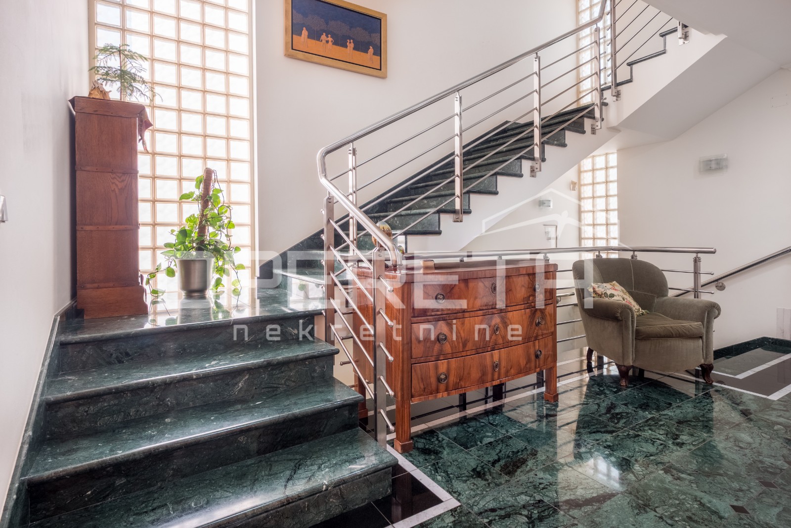 Opis: PRODAJA, SAMOSTOJEĆA VILA, ŠESTINE, 500M2Luksuzna samostojeća vila.U jednoj od najpoželjnijih zagrebačkih rezidencijalnih četvrti – Mlinovi – nalazi se ova ekskluzivna samostojeća vila, smještena u mirnom i zelenilom okruženom dijelu grada, nadomak svih svakodnevnih sadržaja potrebnih za ugodan i kvalitetan život.Vila se prostire na više etaža te nudi 6 prostranih spavaćih soba, uz dodatne višenamjenske prostorije koje se mogu prilagoditi različitim potrebama – radne sobe, teretana, prostor za rekreaciju ili zabavu, soba za goste i slično.Sigurnost je osigurana suvremenim video nadzorom i alarmnim sustavom, što ovu nekretninu čini idealnim izborom za diplomatske misije, rezidencije ili obiteljski život na visokoj razini.Nekretnina također uključuje garažu za 2 vozila, kao i dodatna parkirna mjesta unutar ograđenog dvorišta, te vanjski natkriveni roštilj i dio za druženje.Unutrašnjost vile karakterizira izuzetna kvaliteta gradnje, vrhunski materijali (kamen, puno drvo, aluminijska stolarija i završne obrade, dok vanjski prostor nudi potpunu privatnost, uz predivno uređenu okućnicu u okruženju prirode, mira i tišine....