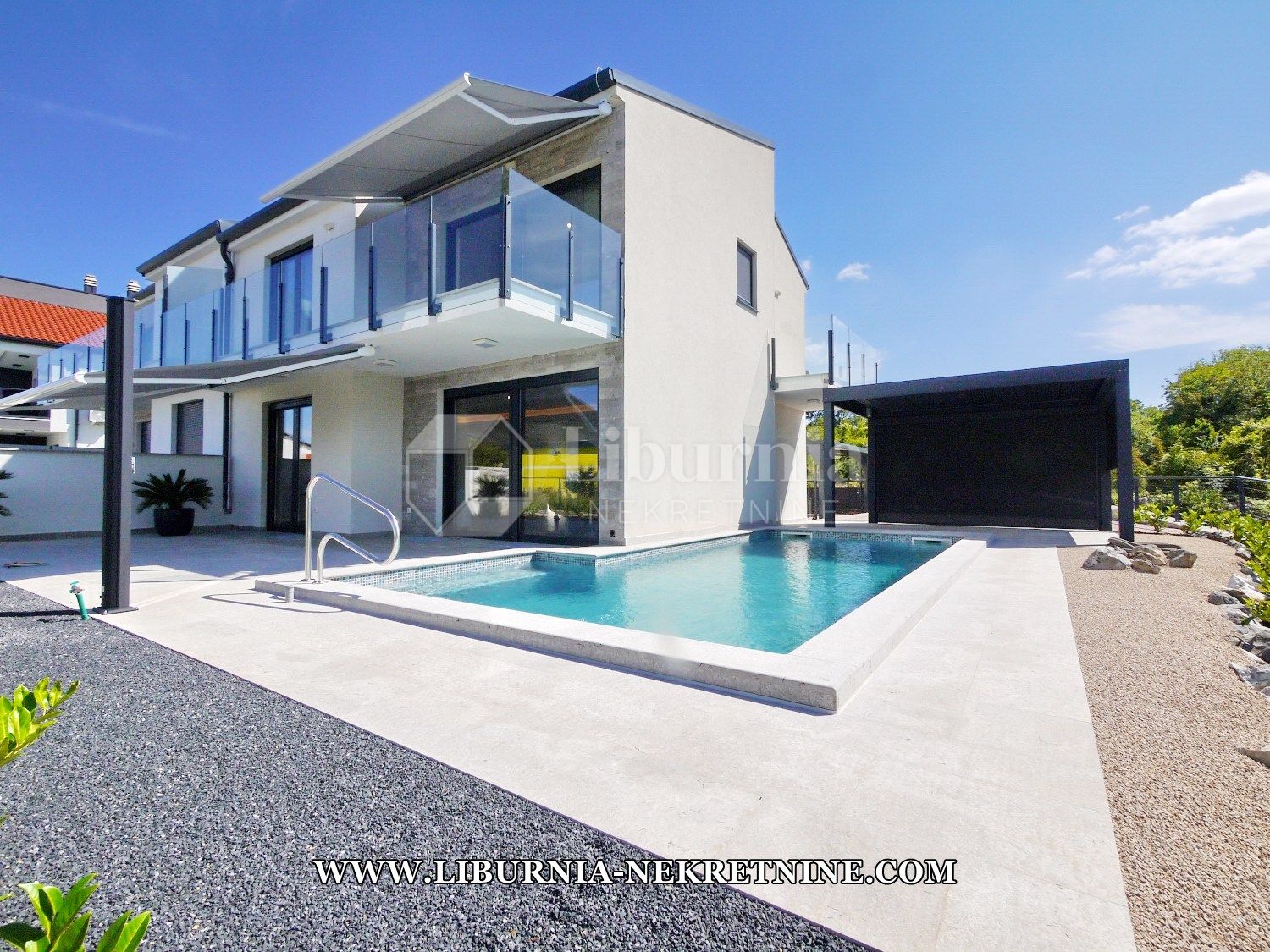 Opis: Otok Krk, Malinska. Jedinstvena luksuzna nova dvojna kuća sa bazenom i pogledom na more, na mirnoj lokaciji, 700 metara blizu mora.