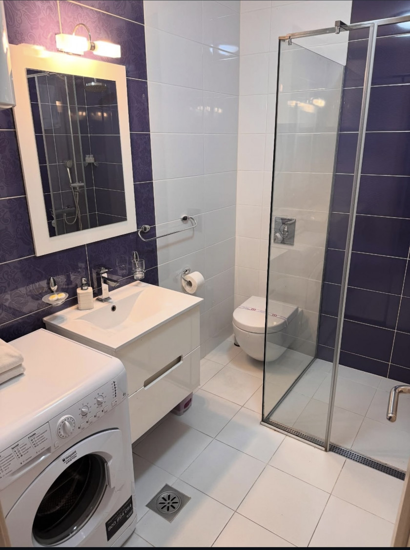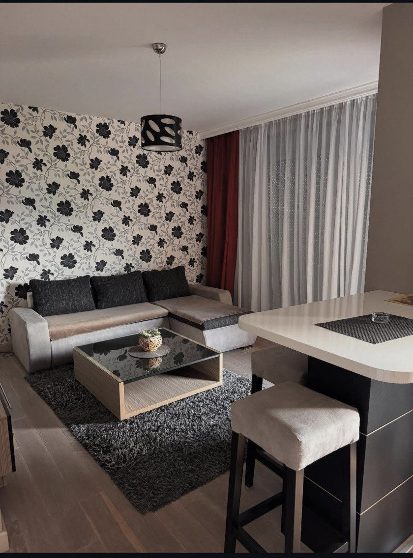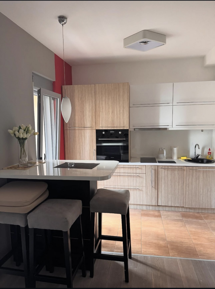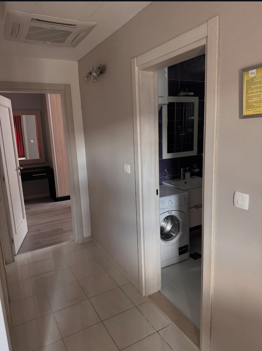 Povrsina stana 50 m2 i nalazi se u kompleksu koji poseduje privatnu plažu. U potpunosti je opremljen nameštajem i kvalitetnom tehnikom. Kompleks posejduje garažu i otvoreni parking. Otvoreni parking besplatan, garazno mjesto 100 eur mjesecno.