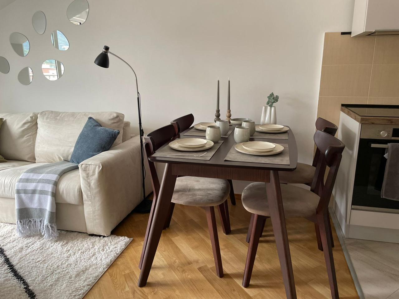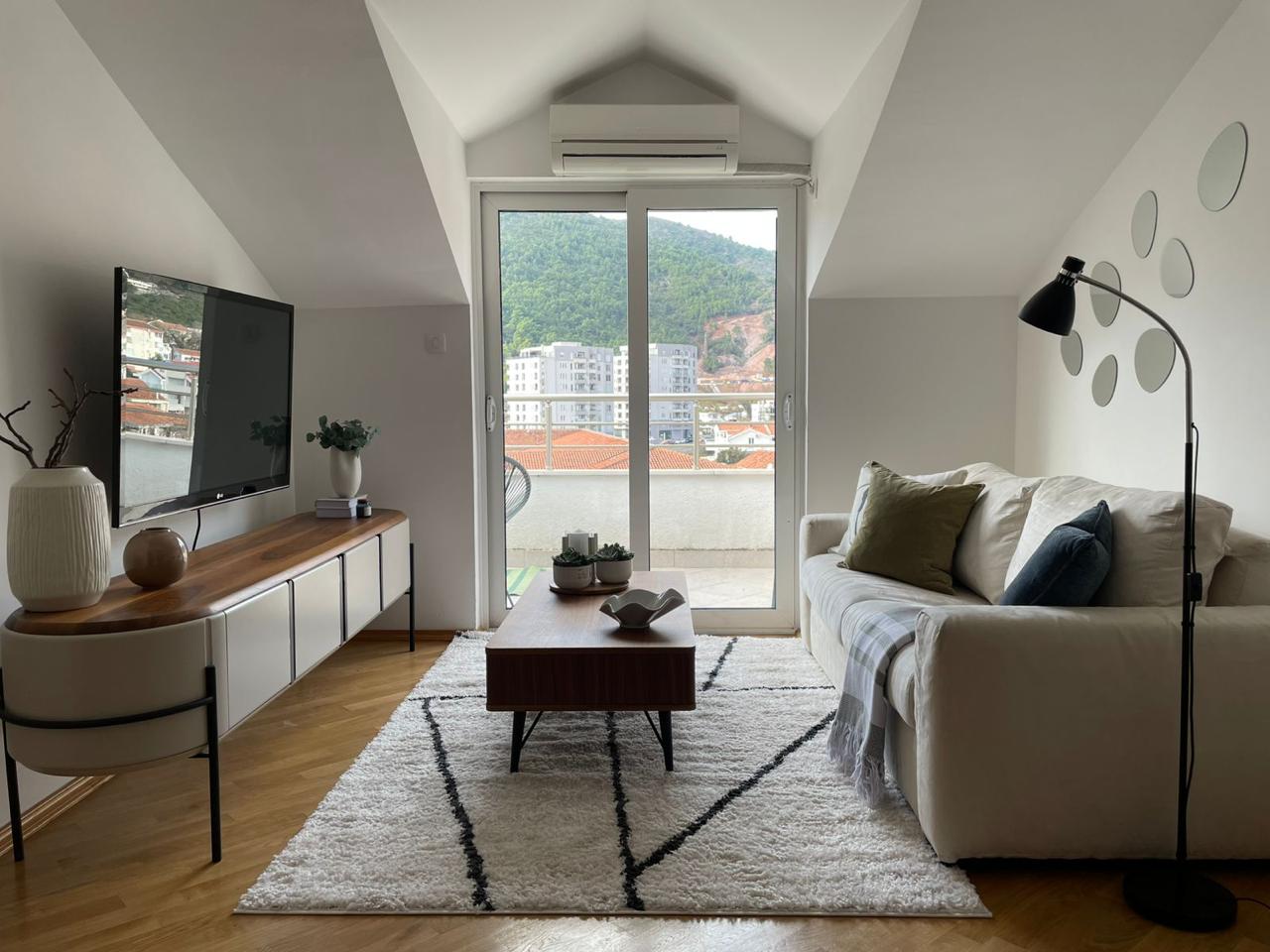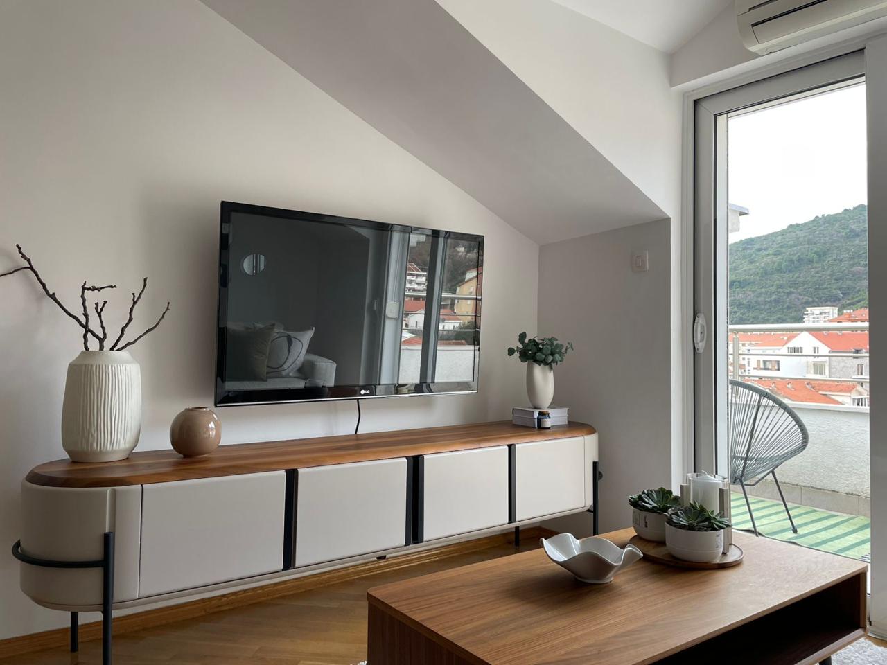 Opis: Сдается на годовую аренду просторная квартира с одной спальней в Будве, в здании Mercur.