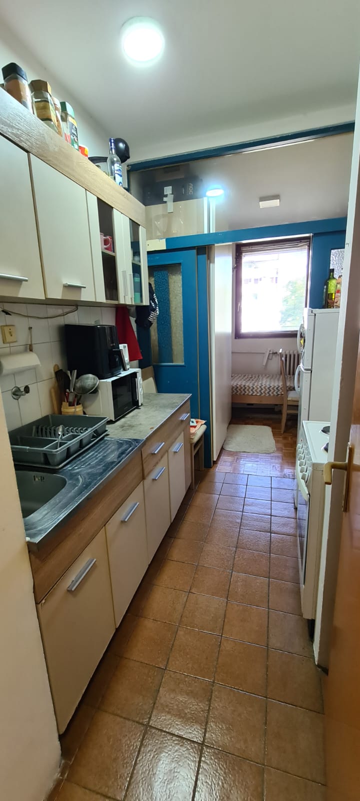Opis: U izvanredno održavanoj zgradi sa centralnim grejanjem, bez lifta, na V spratu (od V), sa stepenicama laganim za penjanje, izdajemo uknjižen i od 20.10. useljiv jednosobni stan, veoma uspešno organizovan kao jednoiposoban, sa terasom od 2m2 koja je preko te kvadrature.
