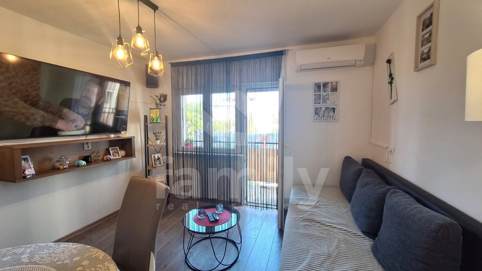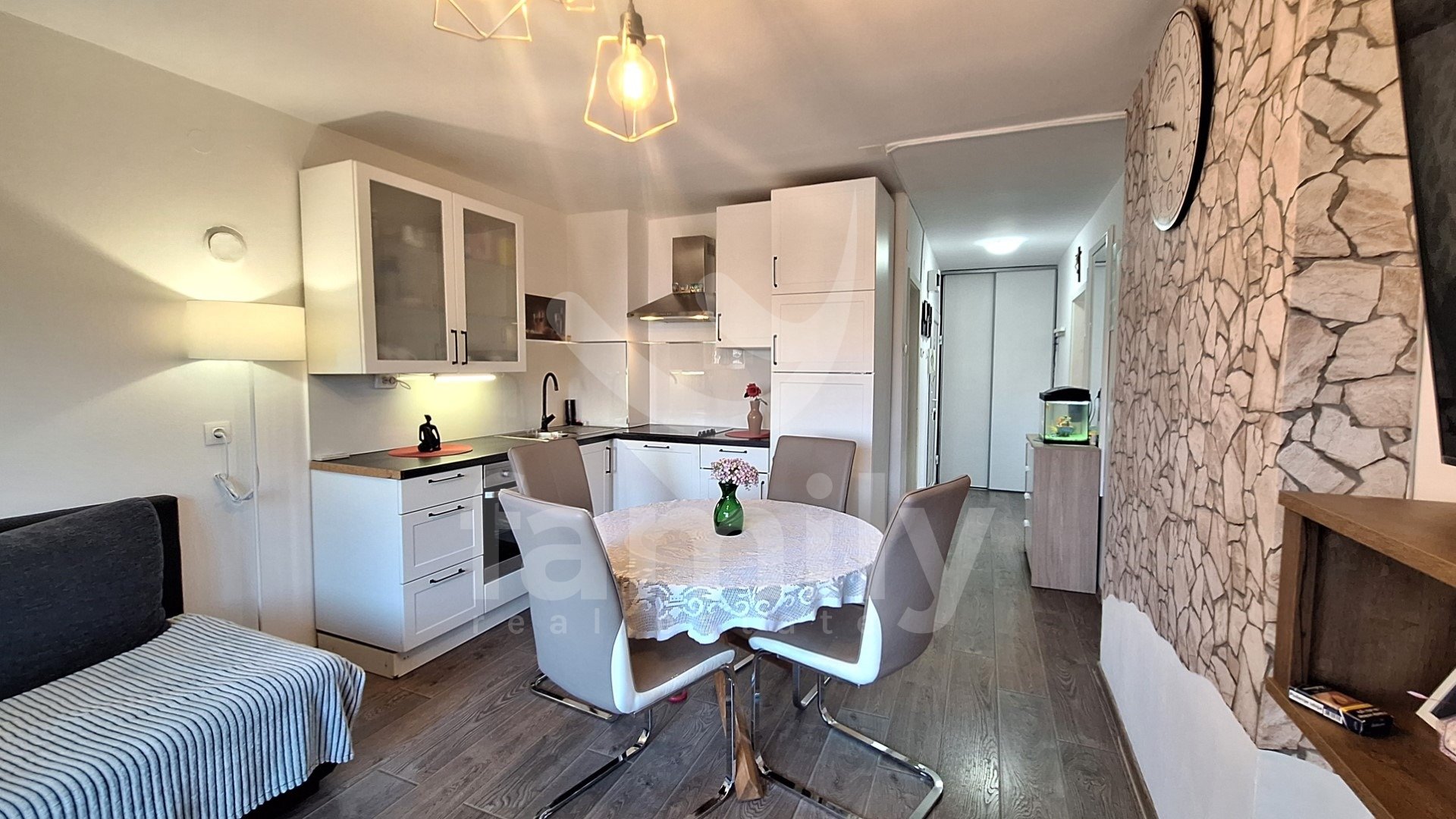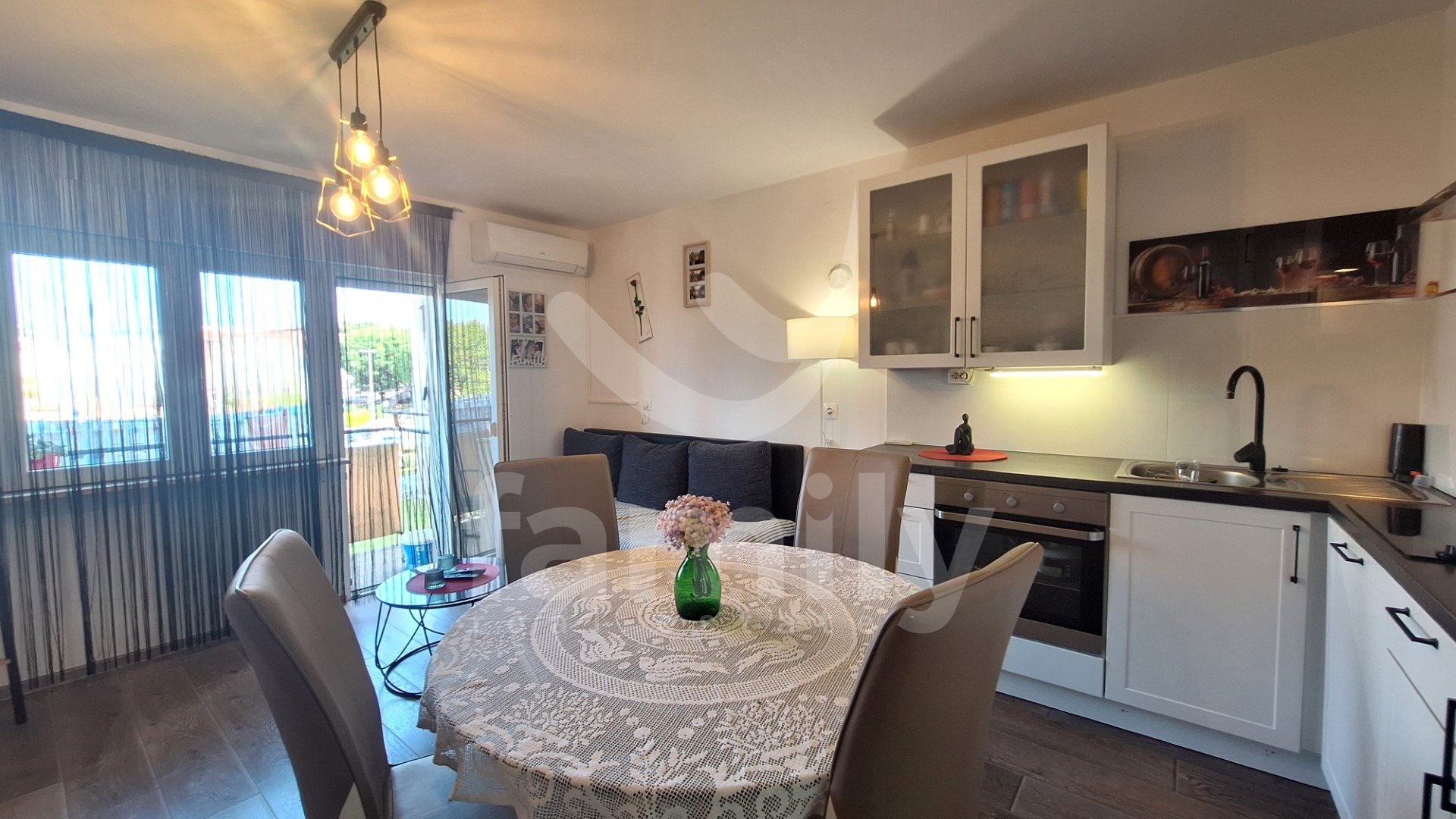 Upravo u jednom naselju u sklopu grada Pule zvanom Kaštanjer se nalazi navedeni stan sveukupne površine 56 m2 na drugom katu stambene zgrade. Stan se sastoji od ulaznog predprostora, osvijetljenog dnevnog boravka open space koncepta povezanim sa kuhinjom i prostorom za ručavanje i izalzom na balkon, dvije komforne spavaće sobe kao i kupatila opremljenog perilicom rublja i bojlerom. U cijelom objektu je postavljena kvalitetna PVC stolarija bijele boje, zgrada je opremljena termo fasadom debljine 5 cm dok su podovi u stanu obloženi laminatom i pločicama. Sustav grijanja i hlađenja je reguliran putem jedinice klima uređaja. Stan se prodaje potpuno namješten sa svim uređajima i elementima....