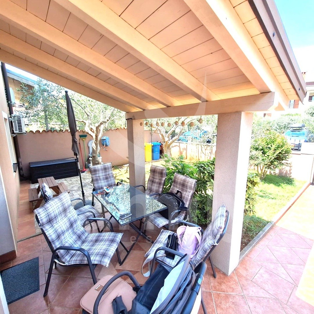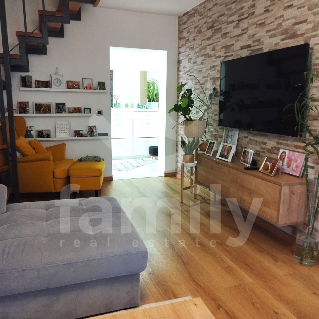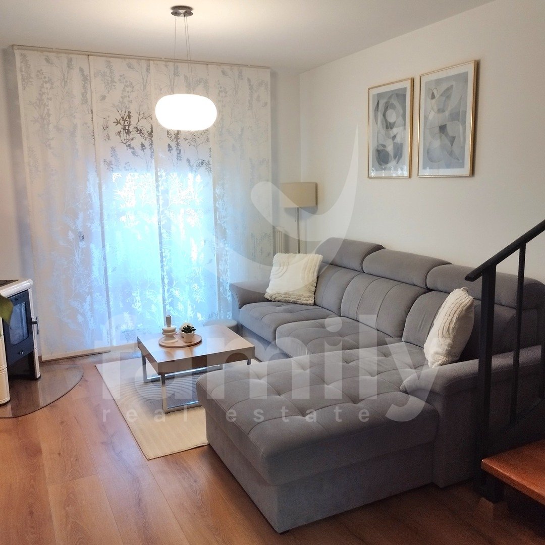 U prizemlju se nalaze dva stana sa zasebnim ulazima. Prvi stan koji je dvoetažni sastoji se od toaleta, prostranog dnevnog boravka, kuhinje sa blagovaonom i izlazom na natkrivenu terasu sa vrtom, dok se na etaži iznad do koje se dolazi uređenim stepenicama nalaze dvije prostrane spavaće sobe, kupaonica i manji balkon....