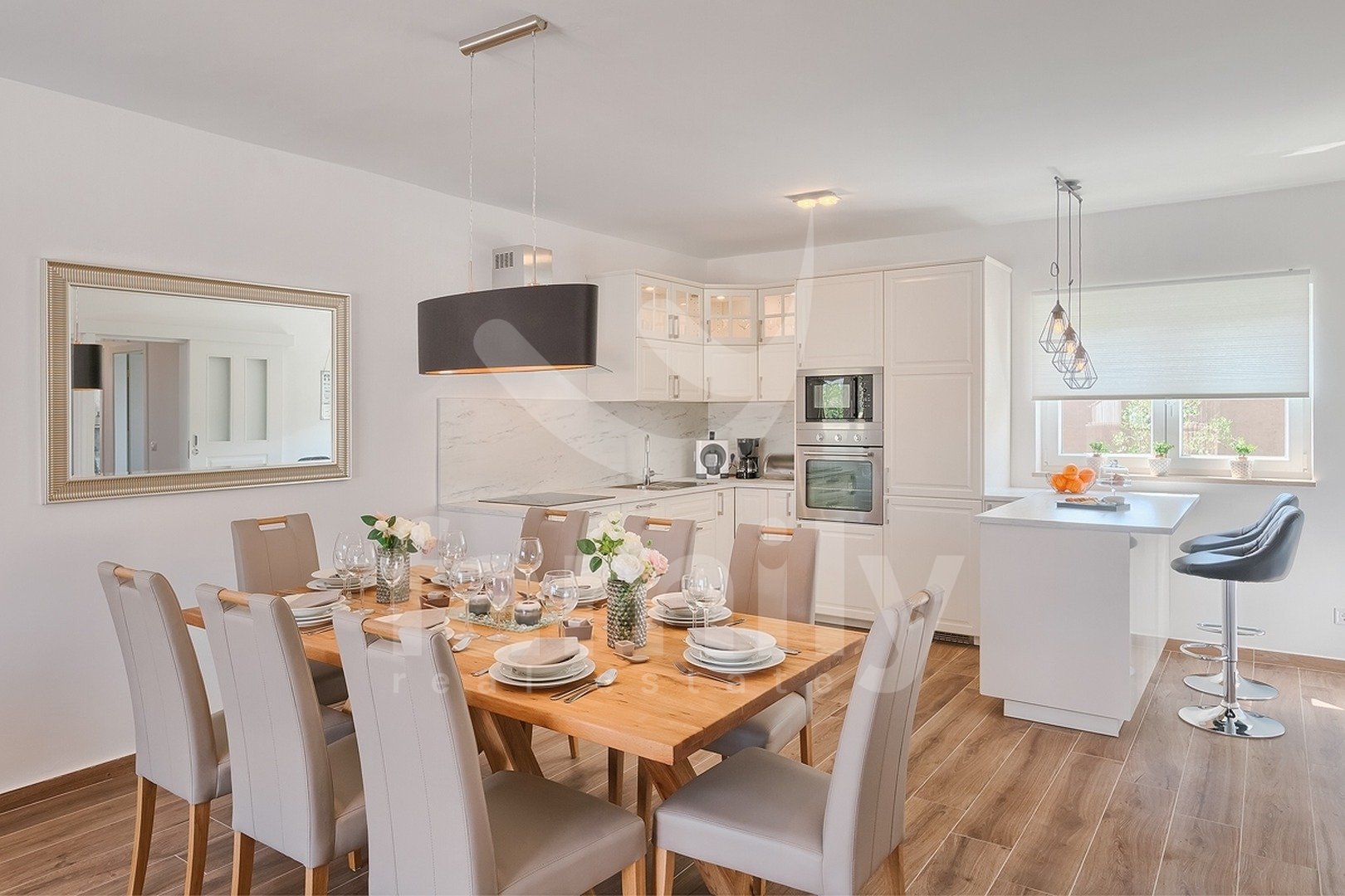 Upravo u Štinjanu, nedaleko od plaža i grada Pule, nalazi se ova prekrasna vila površine 180 m2 na zemljištu površine 500 m2. Prekrasna vila se prostire na dvije etaže. U prizemlju vile nalazi se ulazni predprostor koji dijeli nekretninu na dvije strane, sa jedne strane je predivno uređena i izdvojena konoba sa kaminom i prostorom za druženje, dok je drugi dio prizemlja otvorenog koncepta dnevnog boravka sa blagovaonicom i kuhinjom, prostorijom koja je u namjeni praone, spavaće sobe sa kupaonicom i gostinjski toalet. Na prvome katu smjestile su se još tri spavaće sobe, jedna sa vlastitom kupanicom, dok druge dvije sobe dijele zajedničku. Osim spavaćih soba, na prvome katu nalazi se i predivna terasa sa pogledom na bazen i okolinu....