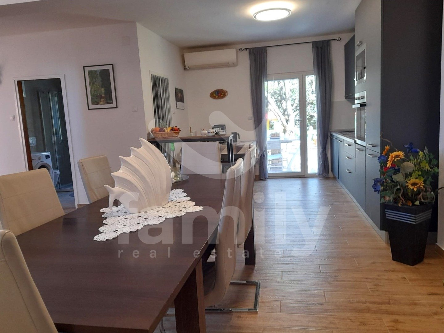 Upravo u Fažani smještena je ova prelijepa katnica površine 200 m2 sa okućnicom površine 815 m2. Prostire se na dvije etaže te se u prizemlju nalazi ulazni prostor iz kojeg se ulazi u prostranu kuhinju sa blagovaonom, kupaonica, ostava i dnevni boravak. Iz kuhinje se izlazi na prostranu terasu površine cca 12 m2. Na katu ove prekrasne kuće se nalaze dvije kupaonice i četiri spavaće sobe od kojih dvije imaju izlaz na prostranu, natkrivenu terasu sa koje se pruža fantastičan otvoreni pogled na more i Brijunsko otočje. Posljednja renovacija nekretnine rađena je 2022. godine i u cijelom objektu je postavljena keramika, dok su sustav grijanja i hlađenja regulirani sa šest uređaja klima jedinica, po jedna u svakoj prostoriji sa zasebnim vanjskim jedinicama. Stolarija je kvalitetna - PVC duplog stakla sa komarnicima....