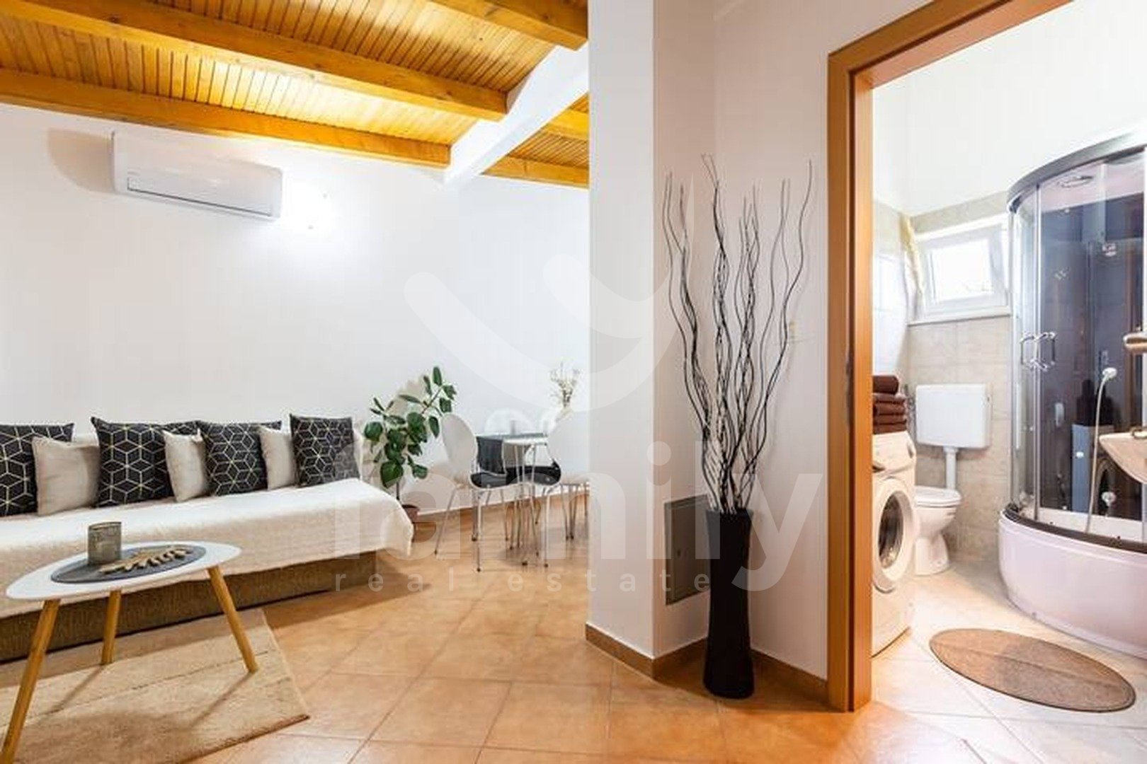 Upravo u Puli na izuzetno mirnoj lokaciji, a opet nedaleko od centra, nalaze se dvije samostojeće prizemnice sveukupne površine 164 m2 sa okućnicom površine oko 400 m2. Prva kuća je površine 50 m2 i u njoj se nalaze dvije spavaće sobe, kupatilo, dnevni boravak sa kuhinjom, balkon, dok se u prednjem dijelu kuće nalazi konoba sa kuhinjom, velikim kaminom i prostorom za druženje površine oko 26 m2. Kuća je opremljena PVC stolarijom, jednom jedinicom klima uređaja i potpuno je namještena.