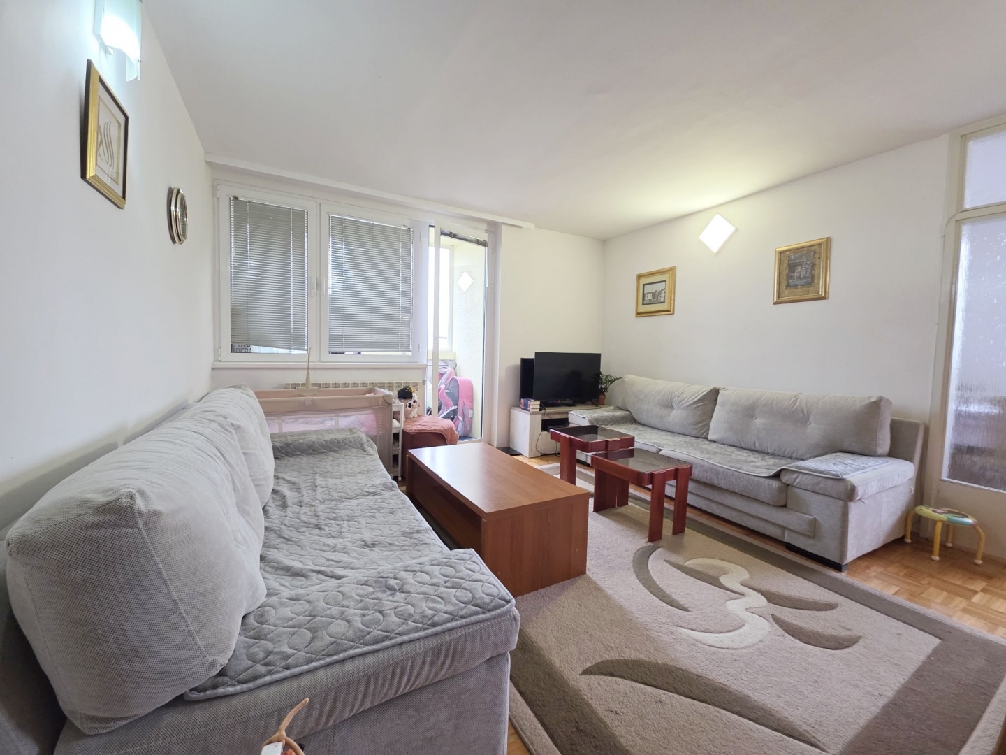 Sastoji se iz hodnika, dnevnog boravka sa izlazom na balkon, kuhinje sa trpezarijom, spavaće sobe, dječije sobe i kupatila. Vanjska stolarija je PVC. Unutrašnja stolarija je drvena. Pod je parket i keramika. Grijanje je centralno gradsko. Ulazna vrata su blindirana. Stan se nalazi na atraktivnoj lokaciji, u blizini gradskog prevoza i svih neophodnih sadržaja (park, market, vrtić, škola). Izdaje se namješten.