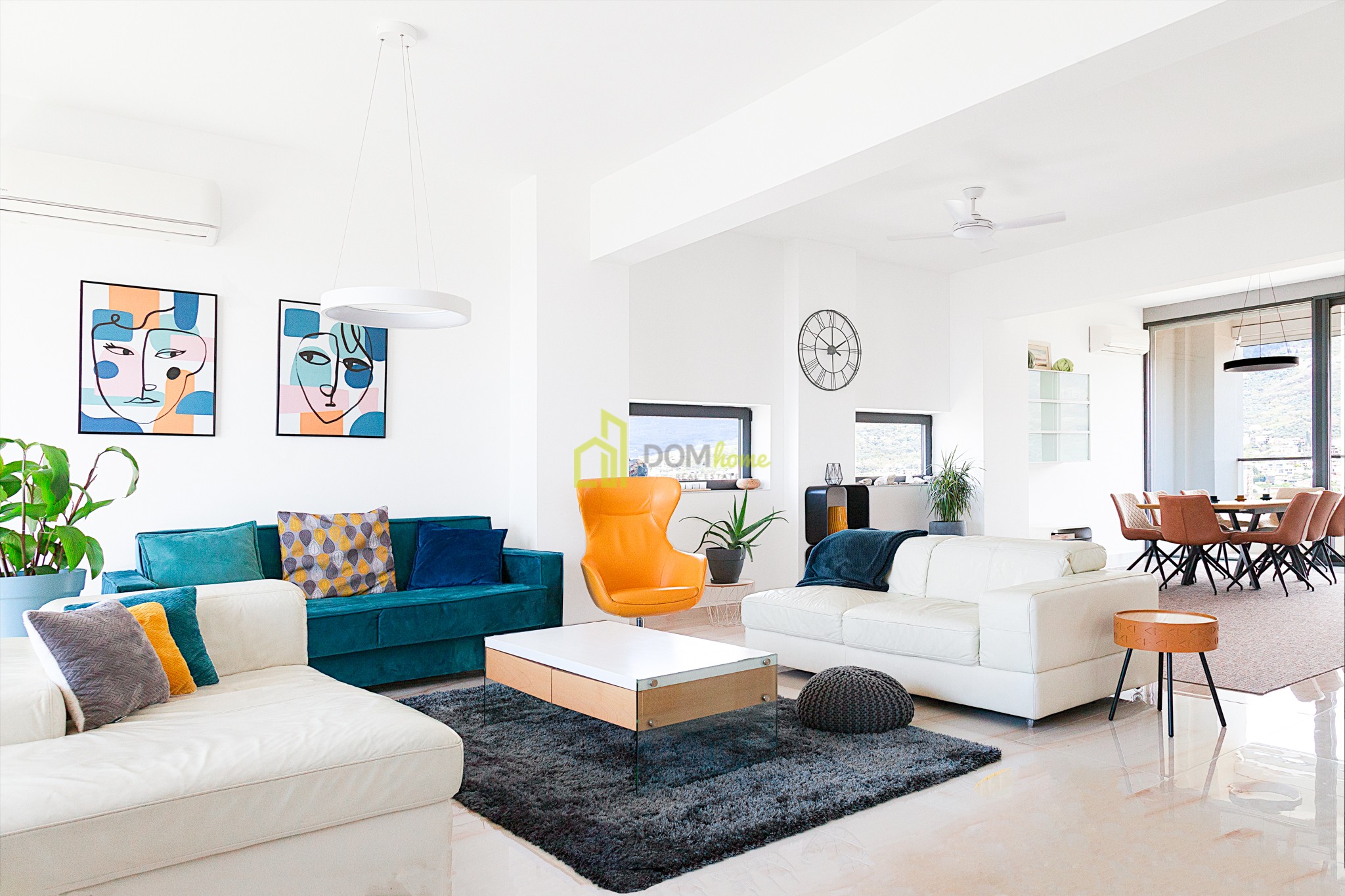 Pruža sve neophodno za ugodan boravak: moderan dizajn enterijera, visoki panoramski prozori sa zadivljujućim pogledom na more i planine.