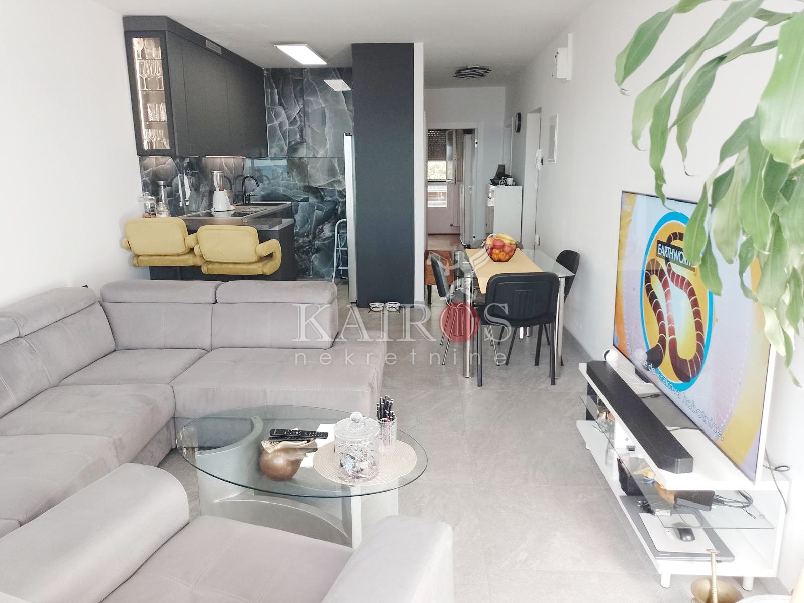 Opis: G. VEŽICA, prodajemo stan površine 62 m2, dvosoban s dnevnim boravkom, na 3. katu stambene zgrade. Stan je kompletno renoviran, lijepo i moderno uređen. Iz dnevnog boravka je izlaz na lođu na jugu s koje se pruža prekrasan panoramski pogled na cijeli Riječki zaljev.