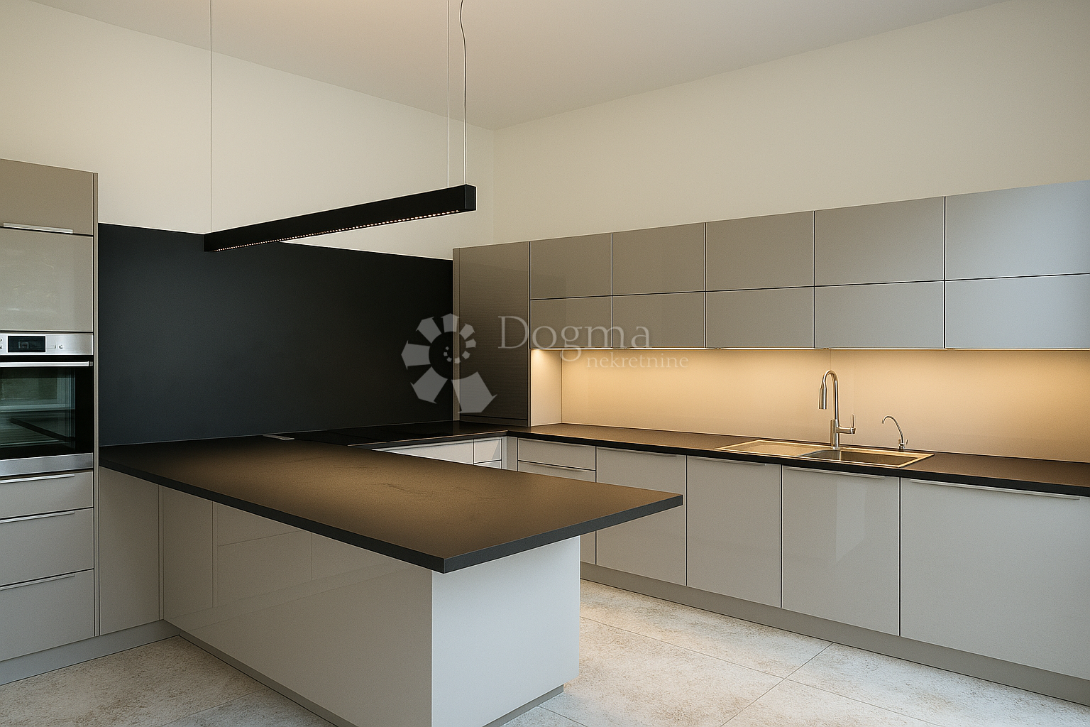 Sastoji se od četiri prostrane sobe (2 namještene spavaće sobe i dnevnog boravka), moderne kuhinje s blagovaonicom, kupaonice, dodatnog WC-a i hodnika.