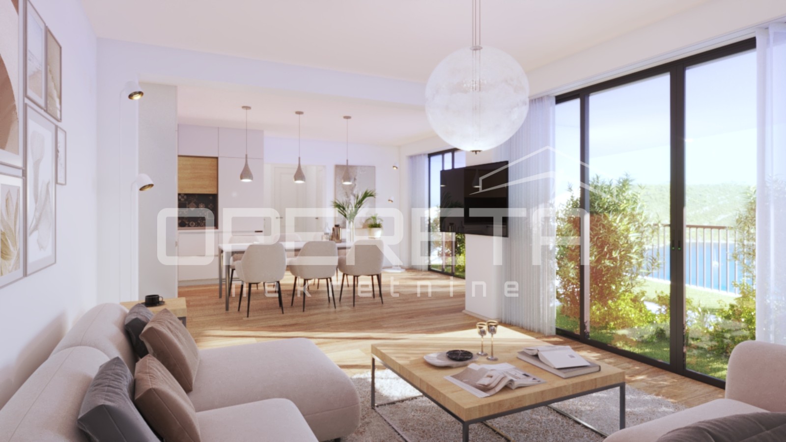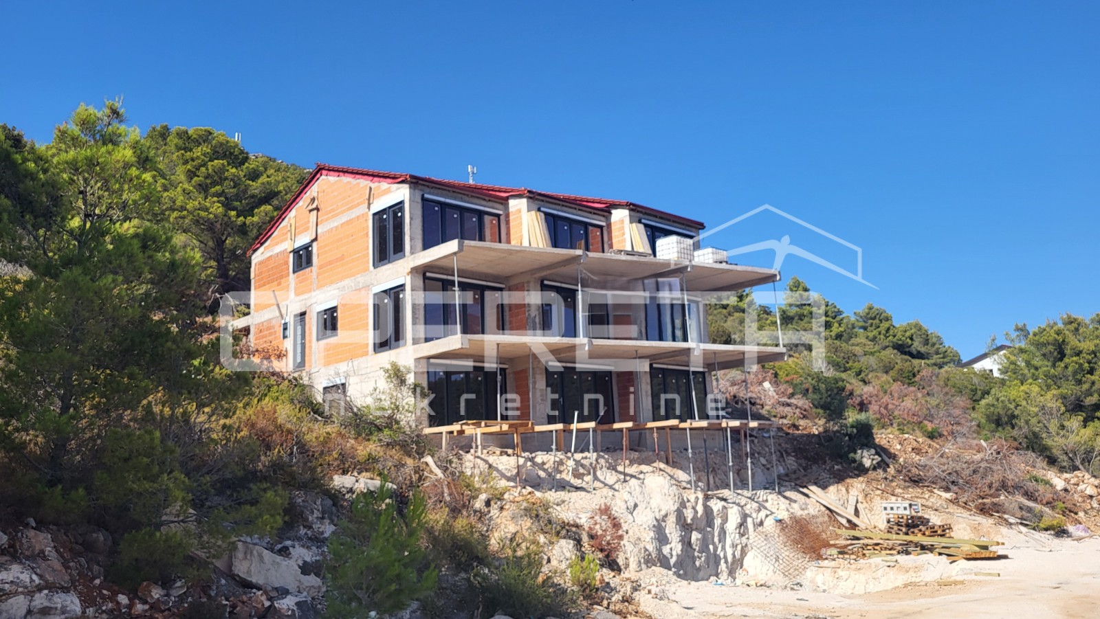 Opis: Dvoetažni stan s prekrasnim pogledom na more, Pasadur, LastovoNa zapadnoj strani otoka Lastova, u mjestu Pasadur, nalazi se dvoetažni stan smješten u suvremenoj novogradnji s ukupno četiri stambene jedinice. Projekt se nalazi unutar granica Parka prirode Lastovsko otočje, na posljednjoj građevinskoj parceli u nizu, u trećem redu od mora – udaljen tek 70 metara zračne linije od obale i oko 350 metara lagane šetnje do prve plaže. Stan se prostire na dvije etaže i ima ukupnu neto površinu od 100,0 m², s orijentacijom prema sjeveru i jugu. Donji kat čini otvoreni dnevni prostor s kuhinjom i blagovaonicom, te jedna spavaća soba i moderna kupaonica. Iz dnevnog boravka vodi izlaz na balkon s pogledom na zelenilo i more, čime se unutarnji prostor prirodno nadovezuje na eksterijer. Na gornjoj etaži nalaze se dvije spavaće sobe, svaka s vlastitom kupaonicom i privatnim balkonom, što omogućuje mir i zaseban prostor za sve članove domaćinstva.Konstrukcija zgrade izvedena je u kombinaciji armiranog betona i klasične zidane gradnje, s ventiliranim krovom izoliranim s 14 cm mineralne vune i pokrivenim kvalitetnim crijepom....