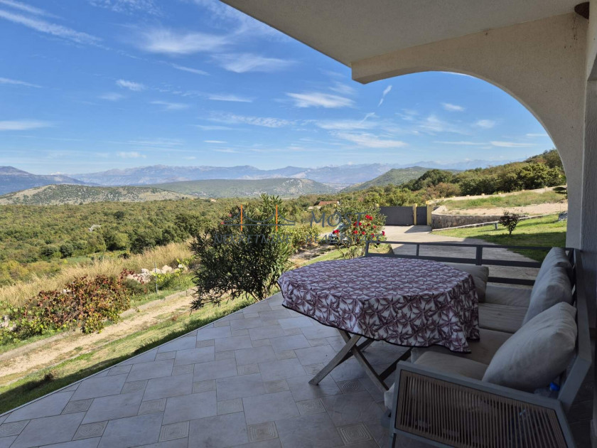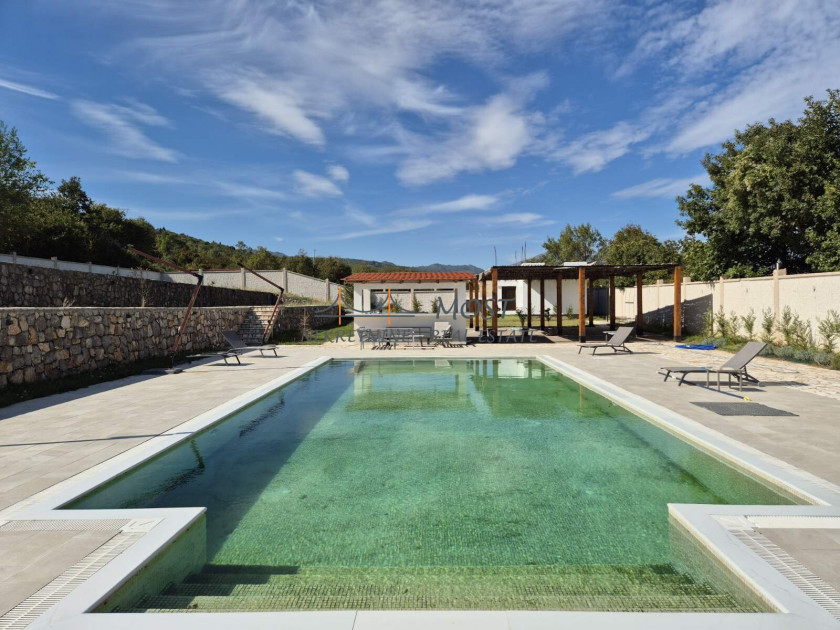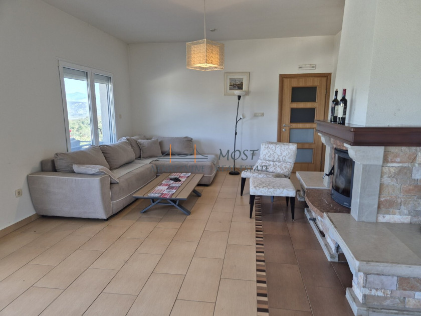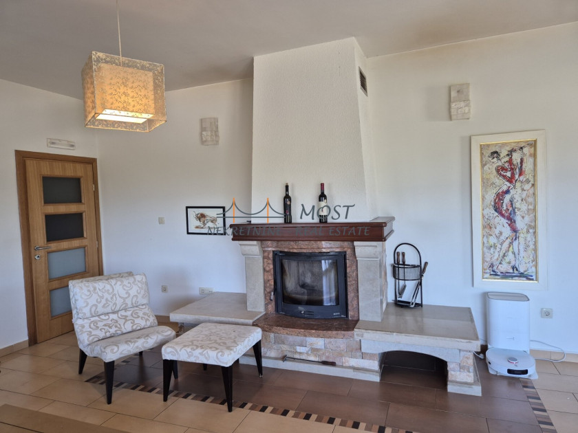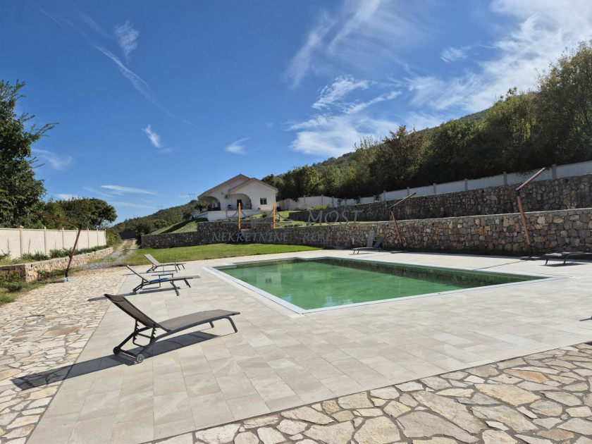Opis: Iznajmljuje se elegantna i prostrana vila smještena u živopisnom selu Komani, nedaleko od centra Podgorice. Ova prelijepa kuća nudi savršen spoj komfora, prirode i privatnosti, idealna kako za miran porodični život, tako i za odmor u prijatnom ambijentu daleko od gradske buke. Enterijer vile odiše toplinom i elegancijom. Prostrani dnevni boravak sa kaminom pruža ugodan prostor za odmor i druženje, dok moderno opremljena kuhinja i velika trpezarija stvaraju savršeno okruženje za pripremu i uživanje u obrocima. Vila raspolaže sa tri udobne spavaće sobe i dva funkcionalna i savremeno uređena kupatila, što je čini pogodnom za višeljudnu porodicu ili veće društvo. Sa terasa se pruža zadivljujući pogled na okolne planine i bujno zelenilo, stvarajući osjećaj potpunog mira i povezanosti s prirodom. Eksterijer kuće jednako je impresivan — uređena bašta krije bazen koji se stapa s horizontom, roštilj idealan za večernja okupljanja, kao i ljetnju kuhinju za uživanje tokom toplih dana. Vila je povoljno locirana, na samo 21 kilometar od Aerodroma Podgorica i ima odličnu saobraćajnu povezanost sa gradskim jezgrom. Zahvaljujući kombinaciji prirodnog okruženja, modernih sadržaja i pristupačnosti, ova nekretnina predstavlja idealnu priliku za one koji traže miran kutak bez odricanja od udobnosti savremenog života.