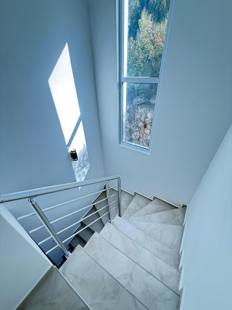 • Sprat (unutrašnje stepenište): 2 spavaće, 2 kupatila, terasa s panoramskim pogledom na more
