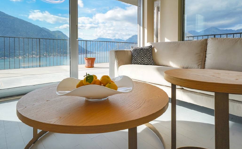 Opis: Prostran stan s panoramskim pogledom u srcu Bokokotorskog zaliva — Dobrota