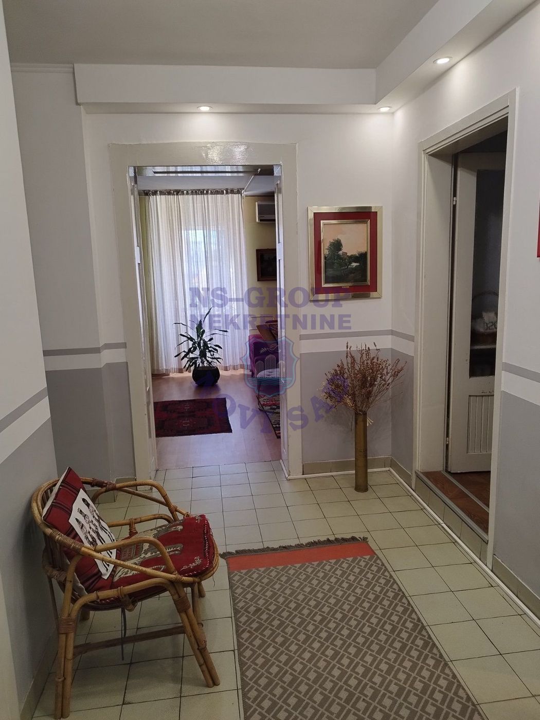 Opis: Fenomenalan stan u srcu grada. Uknjižen je na 115m2 plus dve lepe kockaste terase oko 17m2 koje nisu u knjižnoj kvadraturi. Vlasnik je jednu terasu zastaklio pa je to kutak za odmor i uživanje. Sam stan ima prelepe prostrane lepo osvetljene sobe, dva sanitarna čvora. Dvostrano je orijentisan. Renoviran je pre nekoliko godina i lepo održavan pa nisu potrebna velika ulaganja.