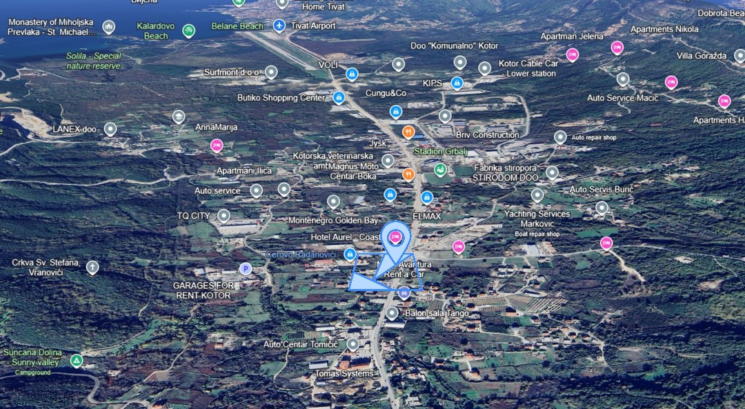 Opis: Prodaje se plac u naselju Radanovići na magistralnom putu Budva-Kotor-Tivat odmah pored robne kuće “Zećanka“.Površina placa iznosi 1486 м² i potpuno je ravne strukture.Dozvoljena izgradnja objekta čija je namena mješovito naselje maksimalne bruto građevinske površine 520 м².