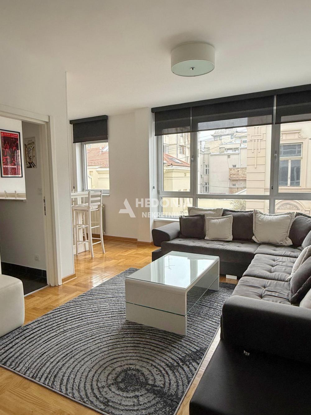 Opis: U jednoj od najlepših beogradskih ulica, u srcu Vračara, nalazi se ovaj dvosoban stan za izdavanje. Zgrada u kojoj se ovaj stan nalazi je novije gradnje, uredna i održavana, na desetak minuta pešačke udaljenosti od Tašmajdana, Skupštine, Trga Nikole Pašića. Odlične je saobraćajne komunikacije sa svim delovima grada i svih infrastrukturnih sadržaja. Stan je komforan, svetao, lepo organizovan. Sastoji se iz ulaznog hodnika, dnevno-kuhinjsko-trpezarijskog dela, spavaće sobe i kupatila. Kompletno je namešten i luksuzno opremljen. Izdaje se na duži period. Obavezan depozit!